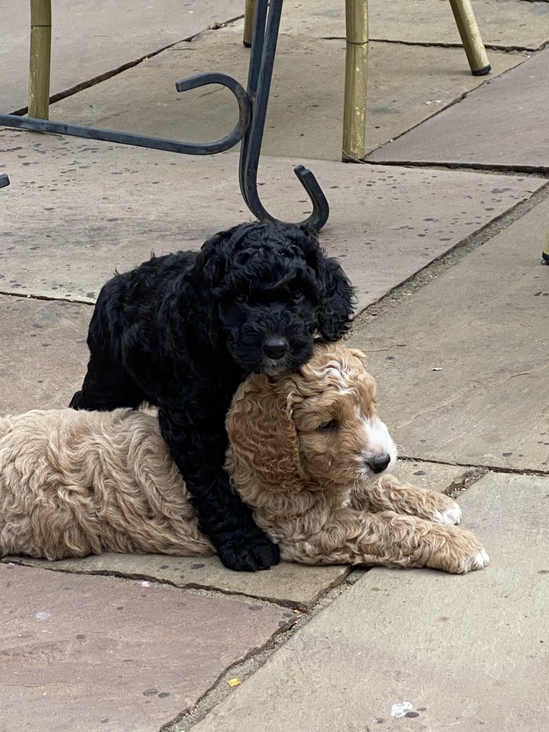 Mum is our much–loved family dog, a half Australian Labradoodle with the kindest, sweetest temperament. Dad is Chester, a handsome stud dog from Doodle Hall, fully health tested with an excellent pedigree. Grandad is Jacque. Also from Doodle Hall.