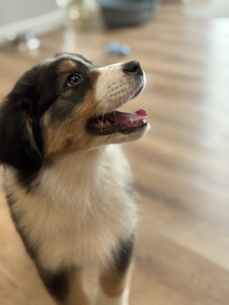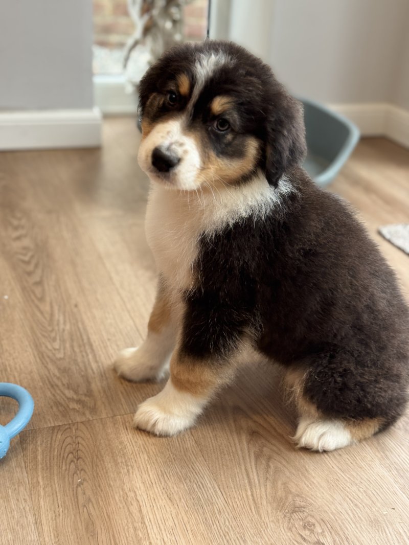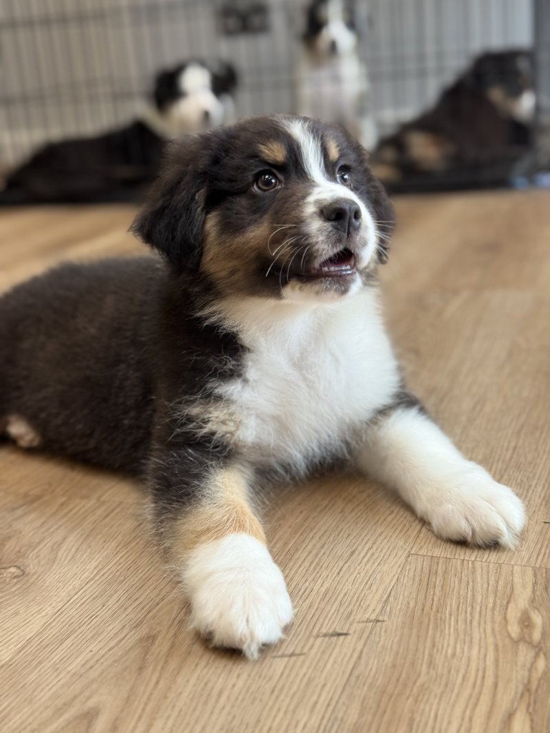 Here we have 5 stunning Australian Shepard puppies, both mum and dad are kc registered and both come from brilliant breeding lines, mum and dad are viewable with the puppies as they are both at home with us, mum is a blue Merle bobtail and has excellent breeding with her generations being involved in showing and dad is a black tri colour who is also from brilliant breeding lines with his generations being involved in showing too, puppies will be ready to leave on the 4th of October and will have had there first vaccination and a vet check also, please feel free to get in contact with me regarding any question, we will be taking deposits to reserve puppies so give me a message