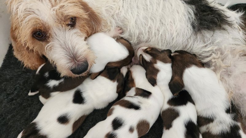 Mum is a petit basset x English basset, dad is a Griffon grand bassets.