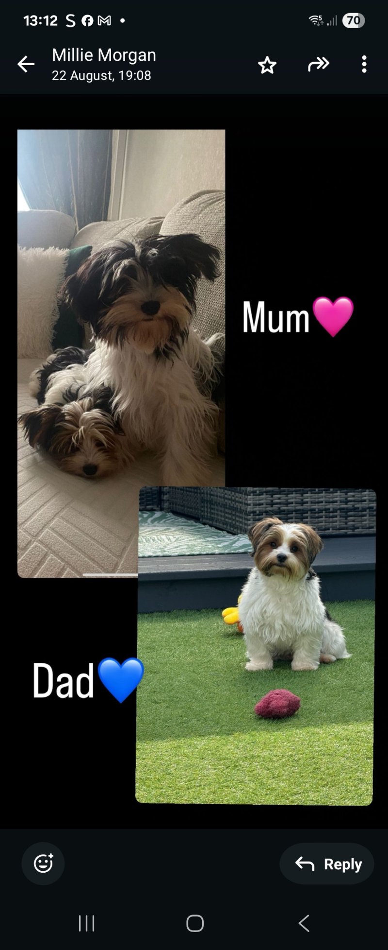 Fleed and warmed up to date they will be microchipped and first vaccination.i have mum and dad are my family pets. They pups are very well socialised with children and 2 big dogs that they live with been spoilt rotten because there so small