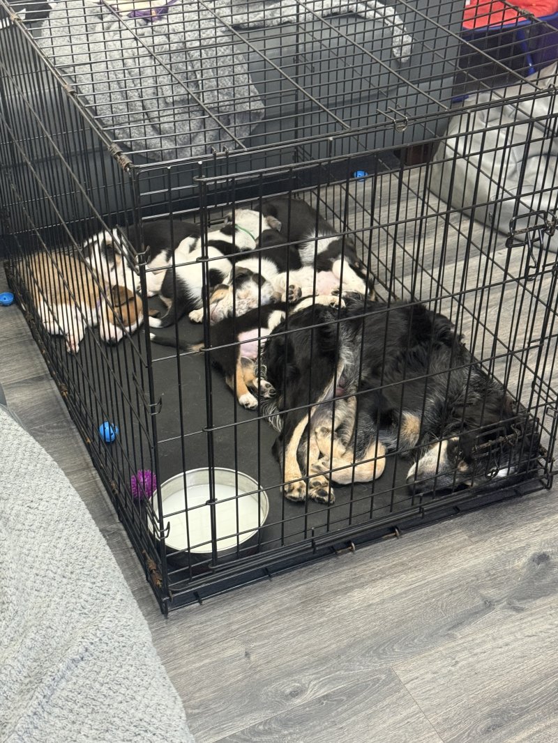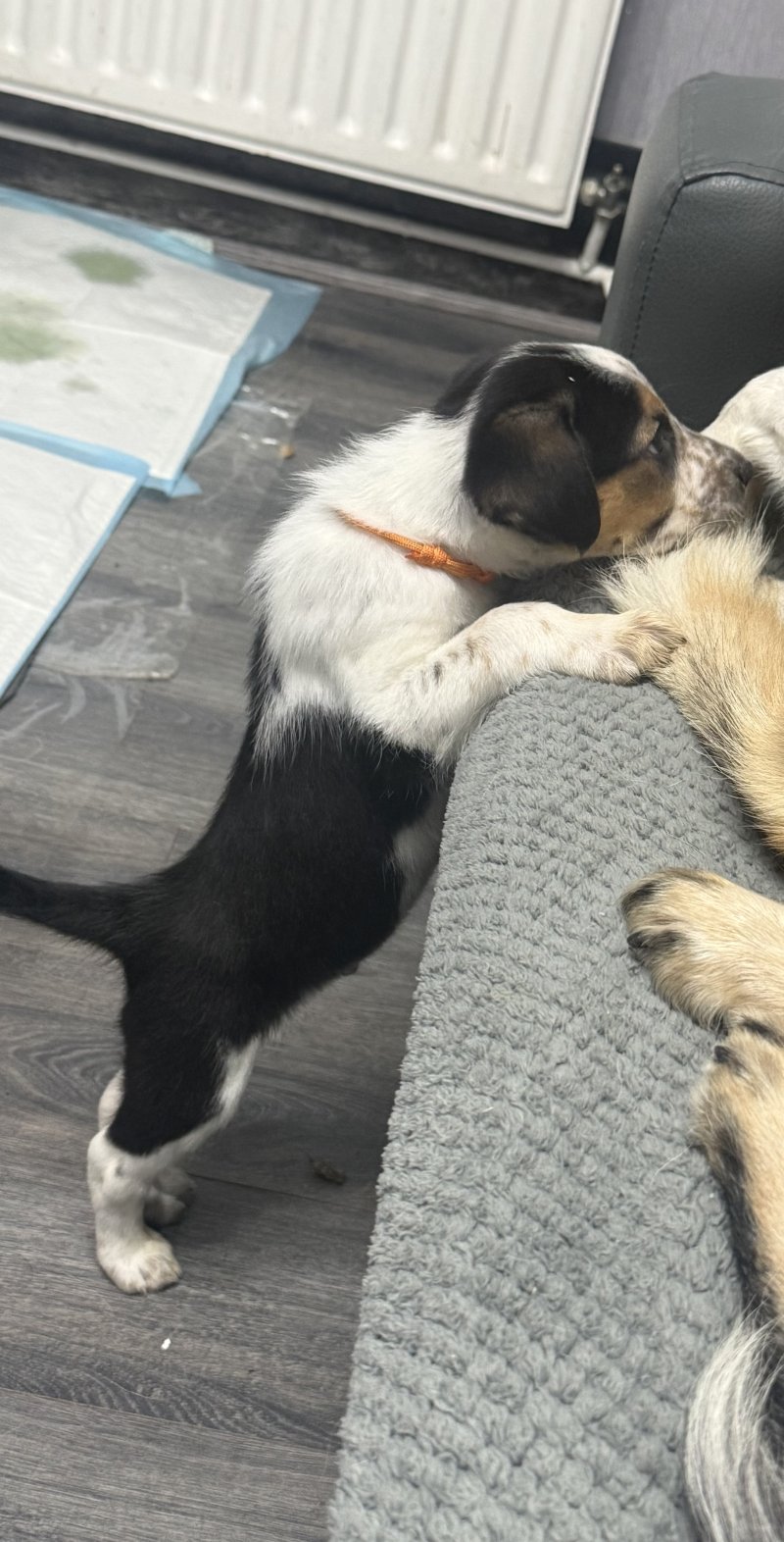 My gorgeous girl has had a litter of 7. ( 2 girls and 5 boys ). ( mam and dad both border collies ). Already weaning and really enjoying there food. Getting really playful with each other and with me and so loving and cuddly Will be upto date on first vaccines, worming, fleas and will also be microchip before leaving. Happy for you to come view them and also mam and dad before making a deposit