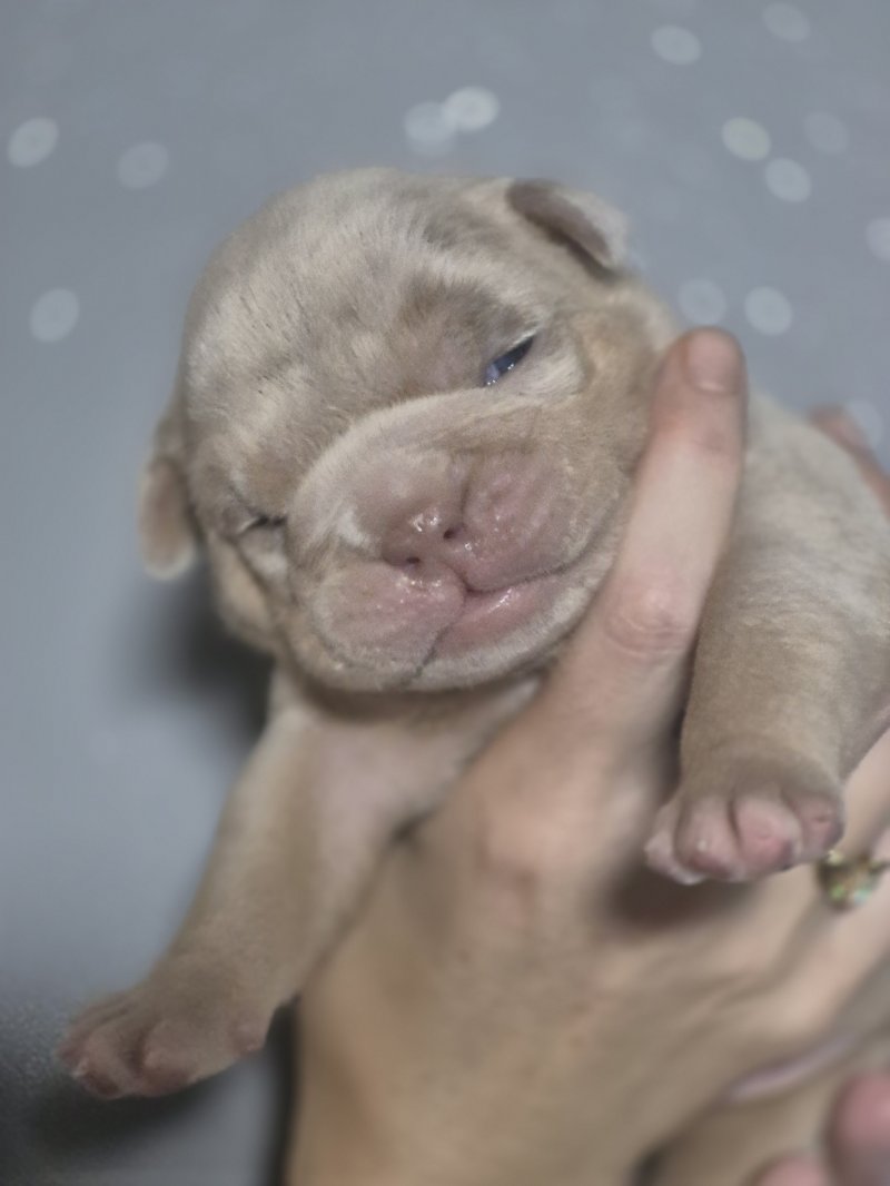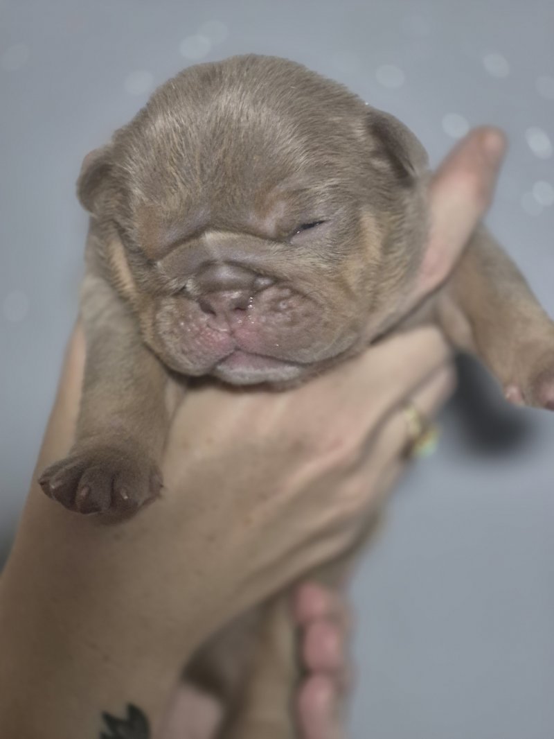 Doris Our Girl,The Mother Of The Pups, who Is A lilac tri tan New English Bulldogge
