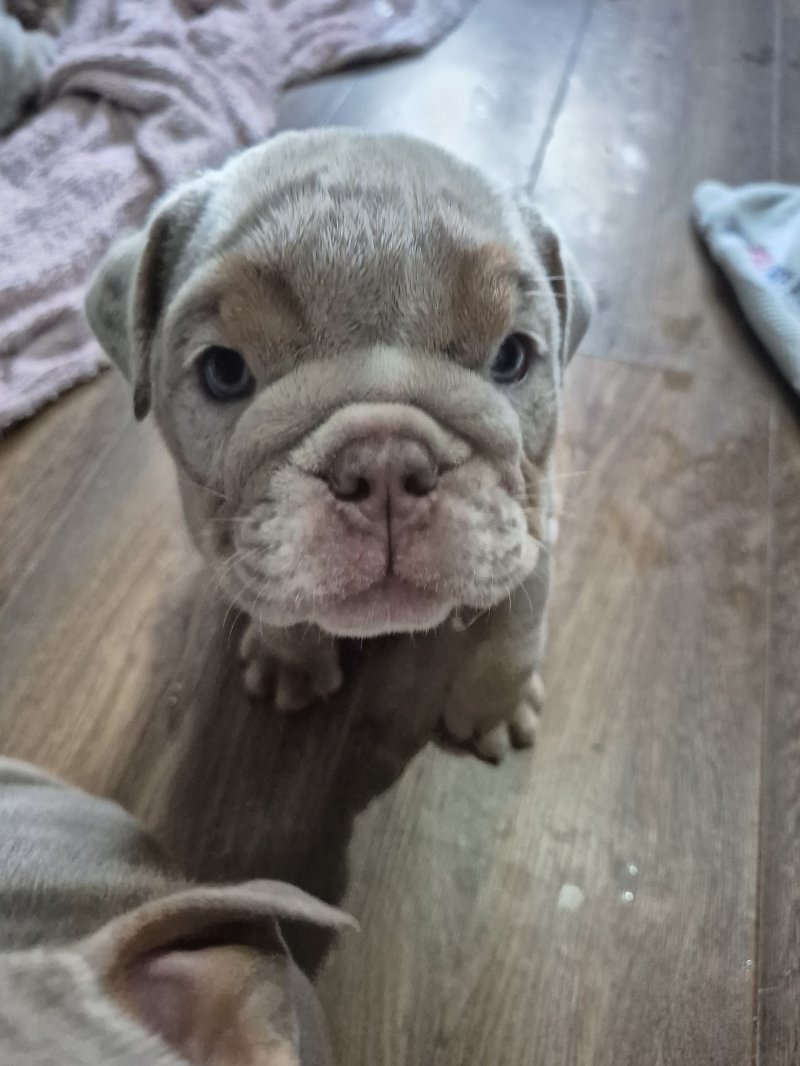 Doris Our Girl,The Mother Of The Pups, who Is A lilac tri tan New English Bulldogge