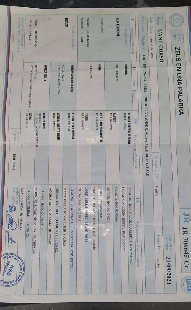 Yuki - the mother is a Cane Corso originally from UK with excellent health and spot on temperament.
