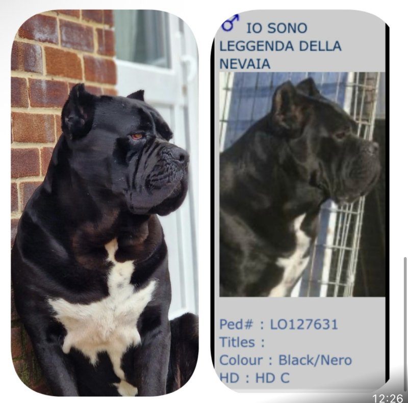 Aries - the father is a Cane Corso originally from Russia and has been imported to the UK. Aries is a descendant from Don Leandro championship bloodline. He’s in perfect health and excellent guarding skills. Great temperament and devoted to his owner.