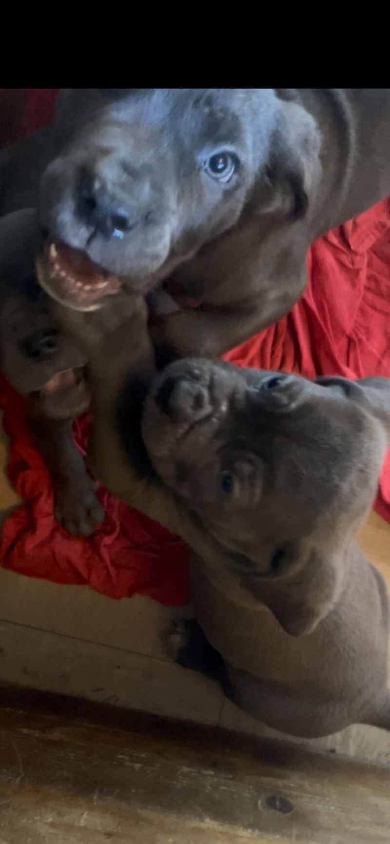 here we have 6 pure cane corso pups left out of a litter of 12, we have 2 girls available (1 lilac, 1 grey) seen in the photo on ther chair & 4 boys two of each colour (I have an individual video of each) .