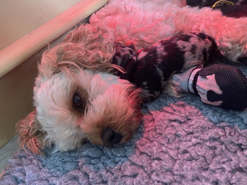 Mum is a F1b red cavapoo and our stunning family pet. She and the pups live in our home with older children and have daily attention from younger children- so well handled and used to many different noises. Mum is very clever, fun, sweet, and our loving family dog. She is proving to be an exceptional mum! All her DNA health tests are CLEAR. DNA results can be shown.