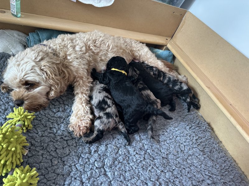 Our beautiful sweet Cavapoo, has given birth to 5 stunning, healthy pups on the 15th September 2025.