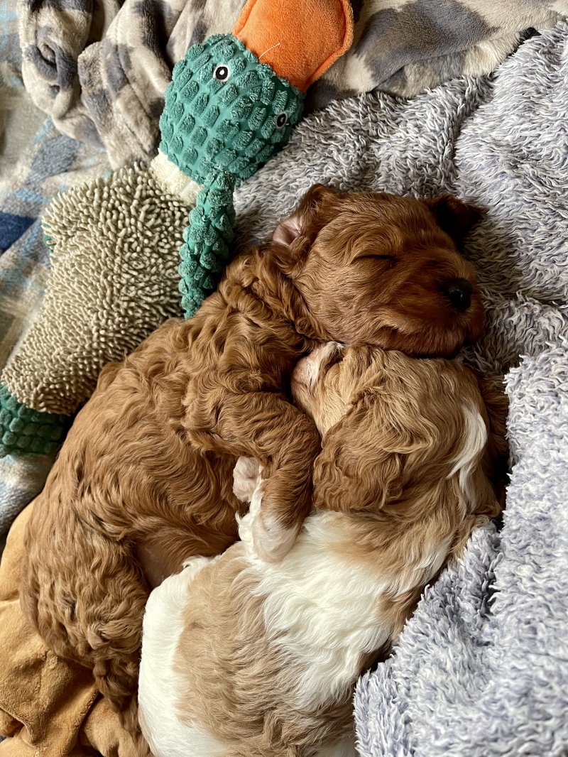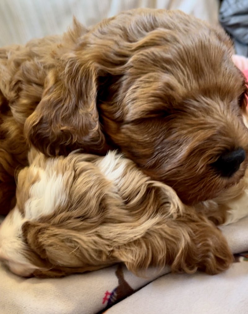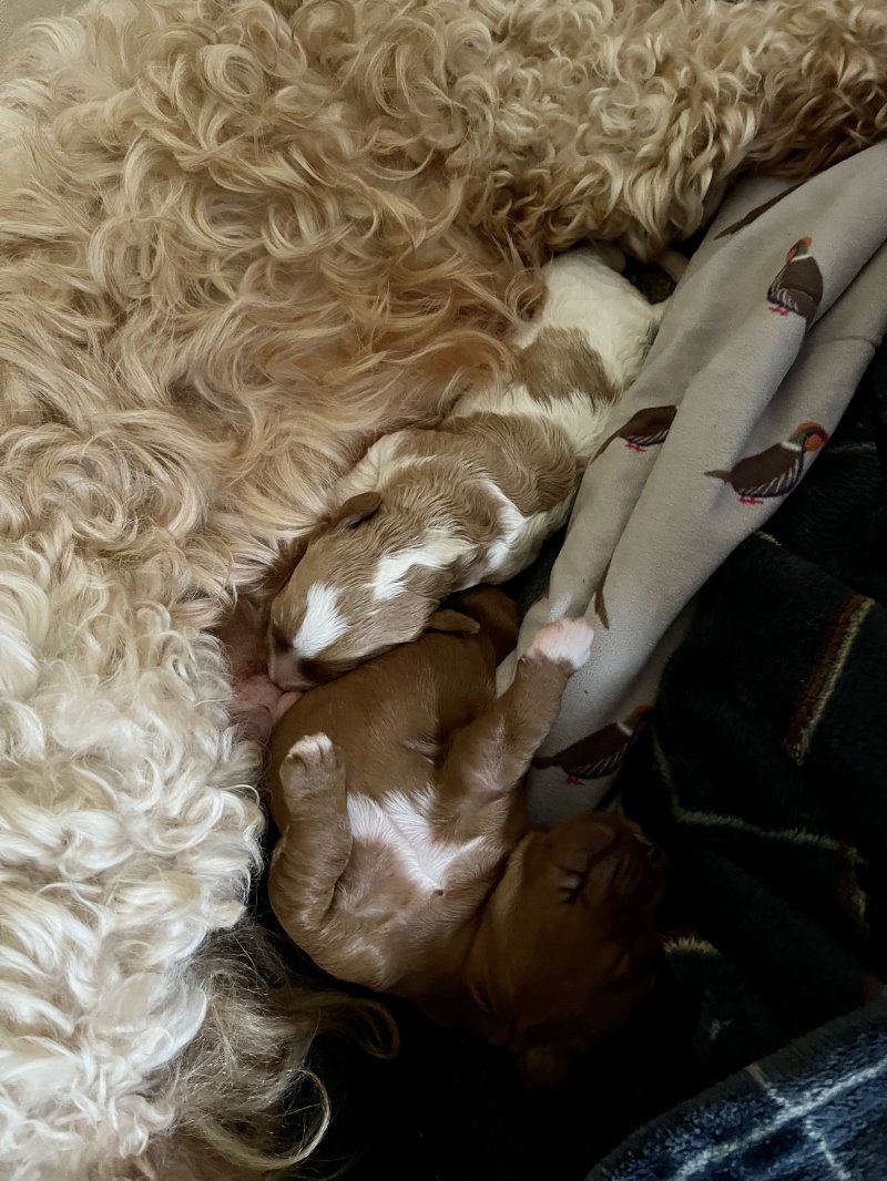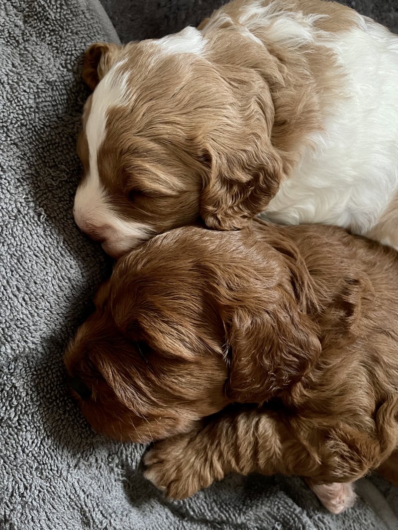 Both parents are F1 cavapoos - 1st generation Cavalier King Charles & Small Poodle.
