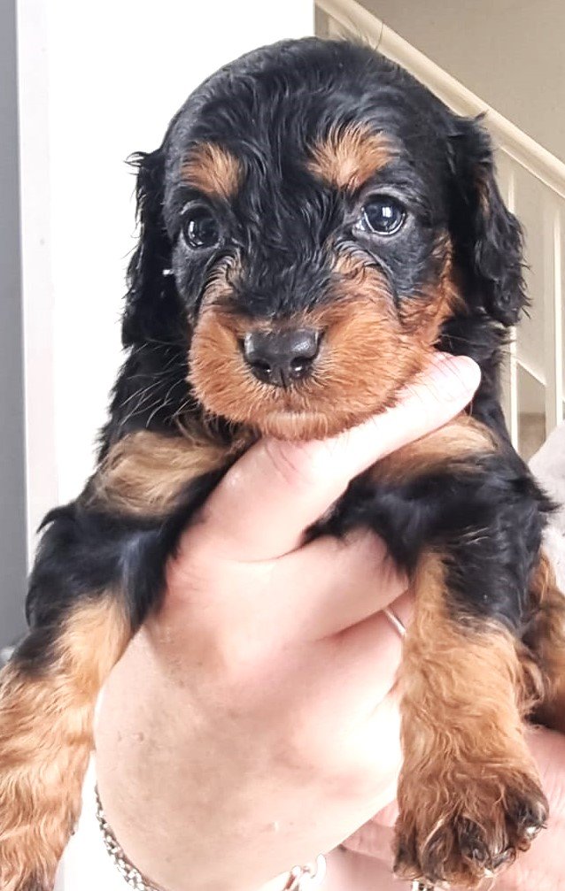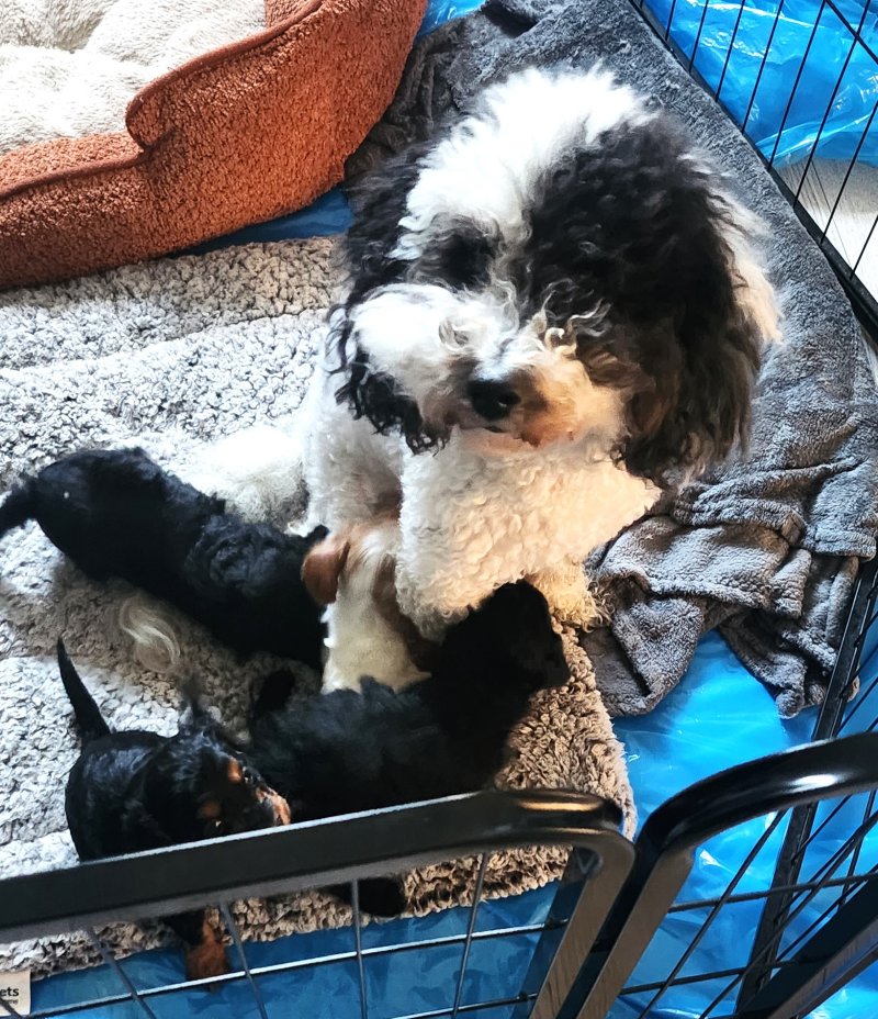 Our gorgeous Bella and mischievous Mylo have had a litter of 5 beautiful Cavapoos. We have two rare black and one black and brown, one sable and one parti-colored. both mum and dad can be seen as they are our family pets. Born on 15th August, they will be ready to go to their forever homes on or around 17th October