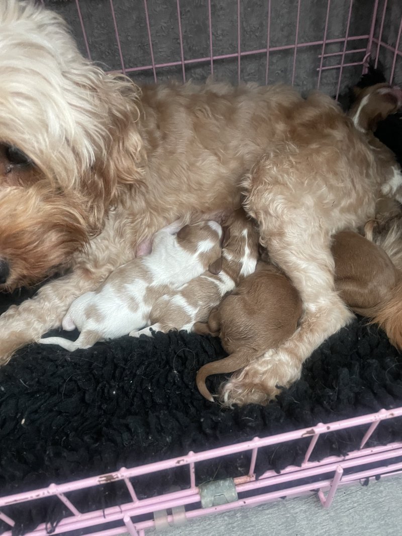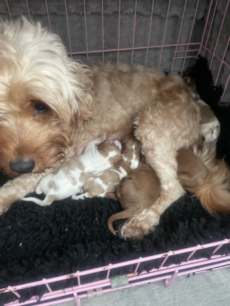 4 adorable cavapoo pups both parents can be seen they have been brought up in a family home