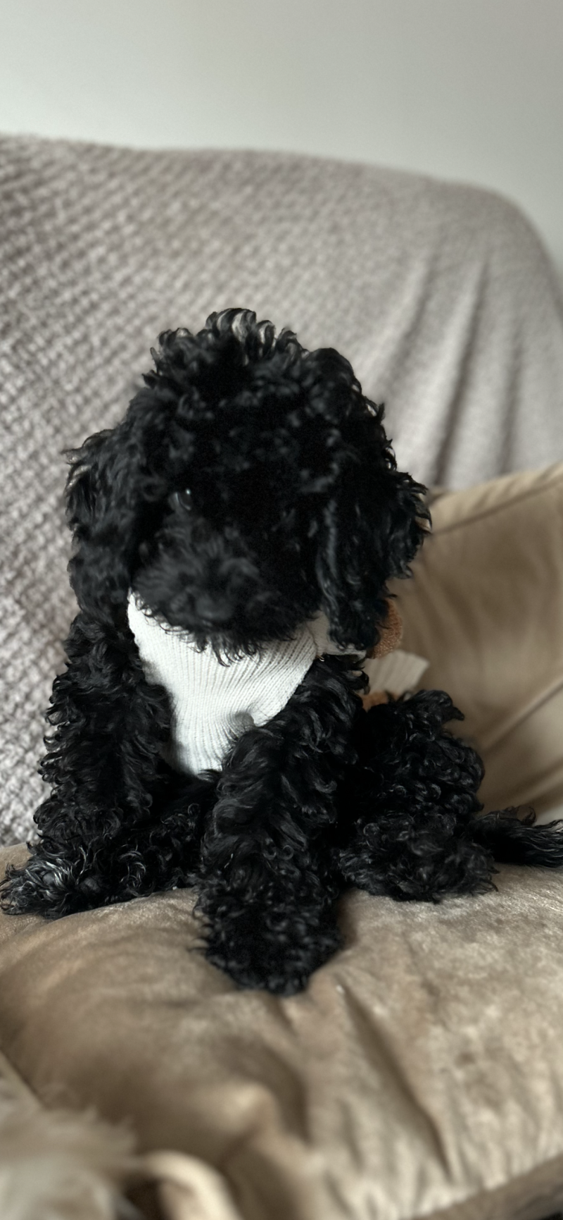 Dad is a pedigree miniature black poodle he is a top bread with papers to show, his dad is a crufts show dog and there are no genetic issues, he too is my dog who we adore at home, i will be happy to stud him after.