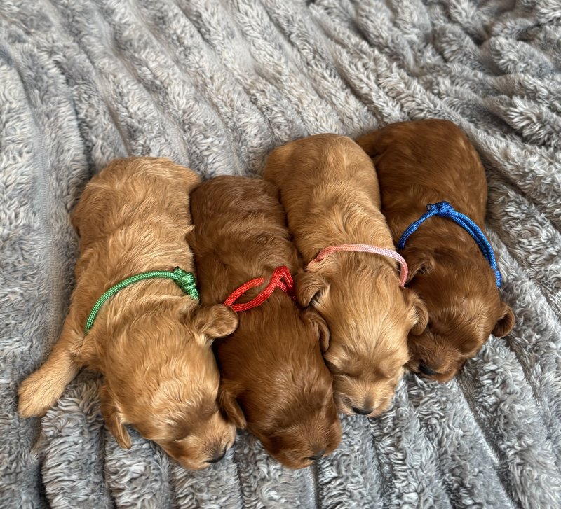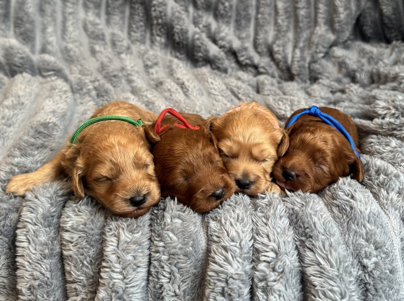 We are pleased to say that we have welcomed F2 cavapoo puppies! With 2 Girls and 2 Boys available, born on the 3rd of October 2025.
