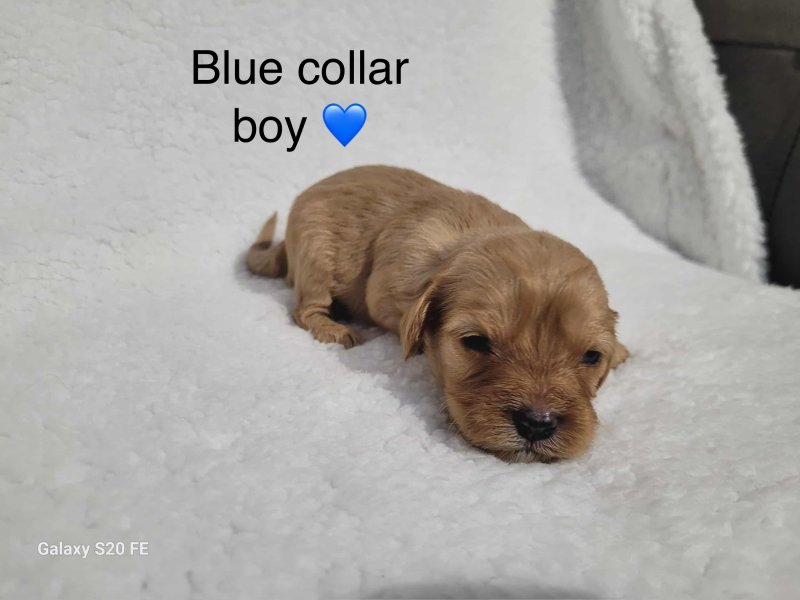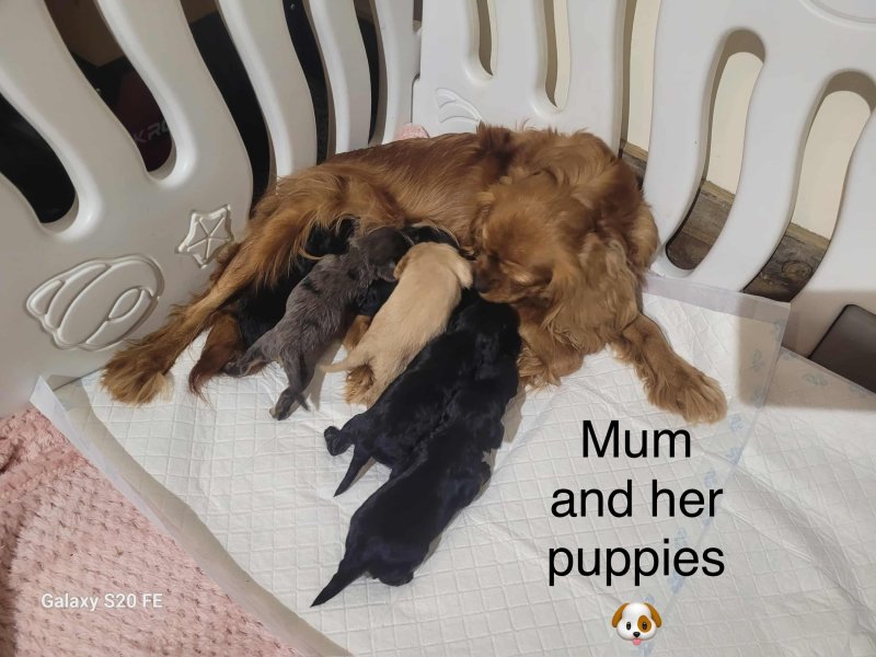 8 beautiful cavapoos 6 boys 2 girls mum is our King Charles spaniel she is deep red health tested and clear of heart mumer dad is a miniature merle poodle also health tested and clear of heart mumer both parents are very loving well behaved dogs who love children and other dogs both dogs can be viewed when seeing our puppies they will leave with food bowls toys blanket with mums scent on first injection microchipped and flea and worm treatment up to date our puppies are raised in our family home surrounded by all household noises and children they will be getting groomed at an early age so they get used of being groomed they will also start there toilet training process for any more information please feel free to contact me at anytime to arrange a viewing or if you would like to send over any more pictures please no time wasters we want the very best of homes for our puppies so please don’t be offended if we ask some questions thanks