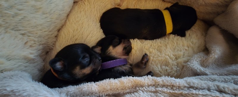 They will leave with their 1st injections, microchiped, puppy pack including a blanket with mums smell, toys and a starter pack of the food they've been weaned on.