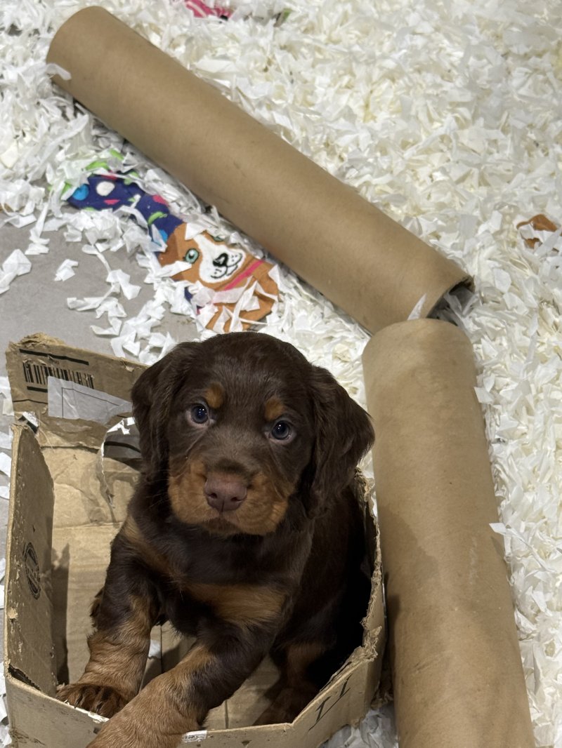 The puppies are well socialised, raised in the home, surrounded by everyday household noises, supervised interaction with children, and contact with other family dogs.