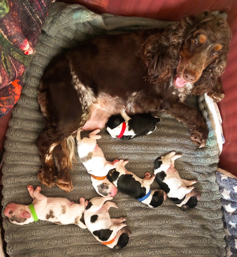 Our beautiful girl has had a litter of 6 (2 girls and 4 boys) gorgeous show type cocker spaniel puppies that are looking for their forever homes
