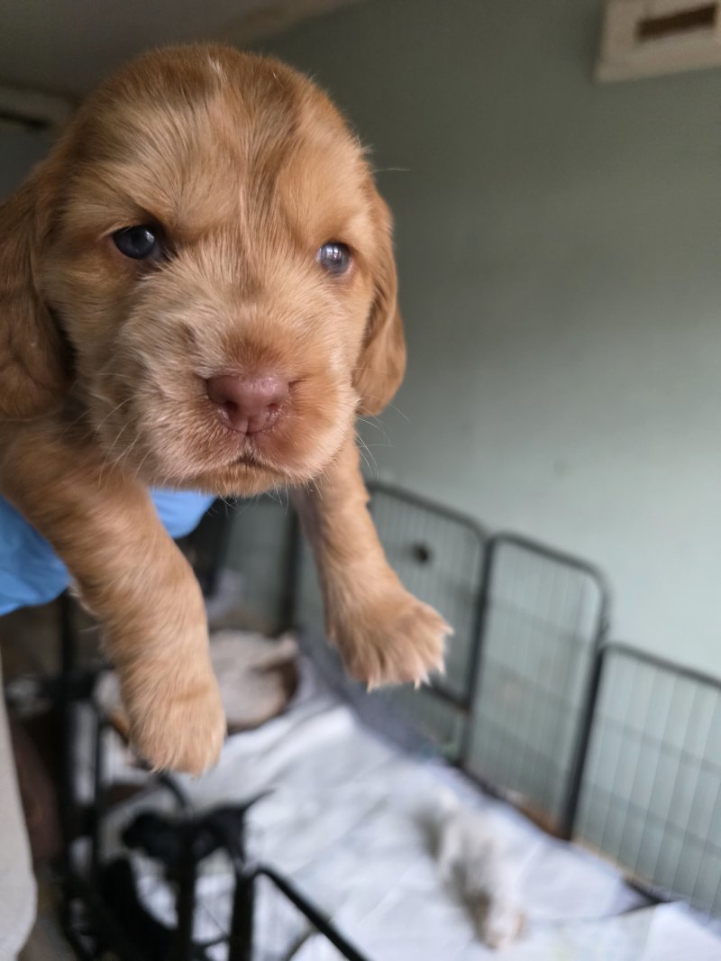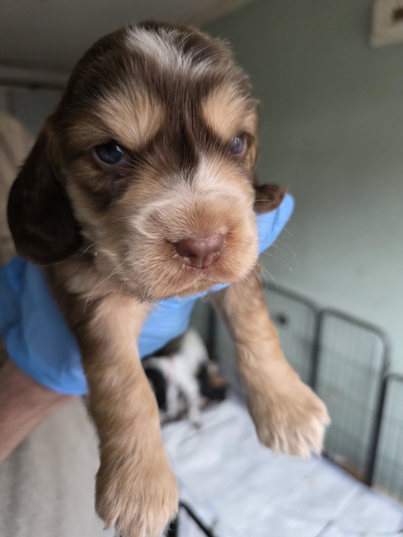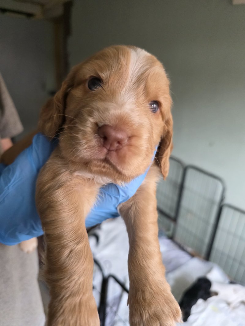 dad is show type kc registered with a clear full health history and a 0.00 COI , ( no inbreeding in lineage)combining together to make a beautiful litter of cocker puppies, stunning looks,intelligent and great temperaments pups are being weaned and socialised, they will all leave with a puppy pack, microchip, free 4 week health insurance , video viewings and physical viewings are welcome