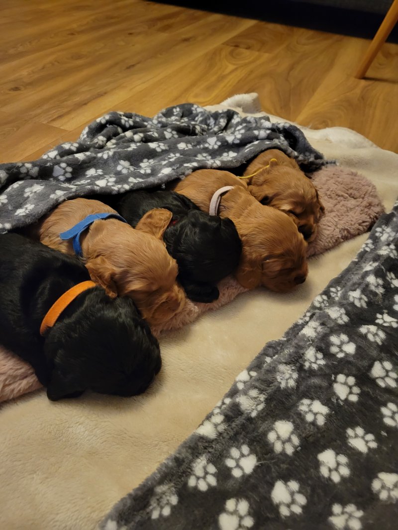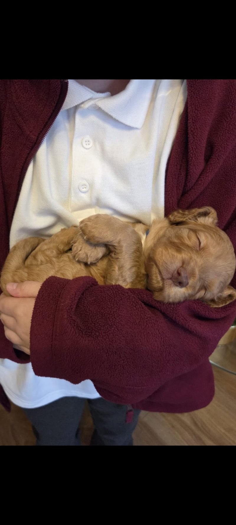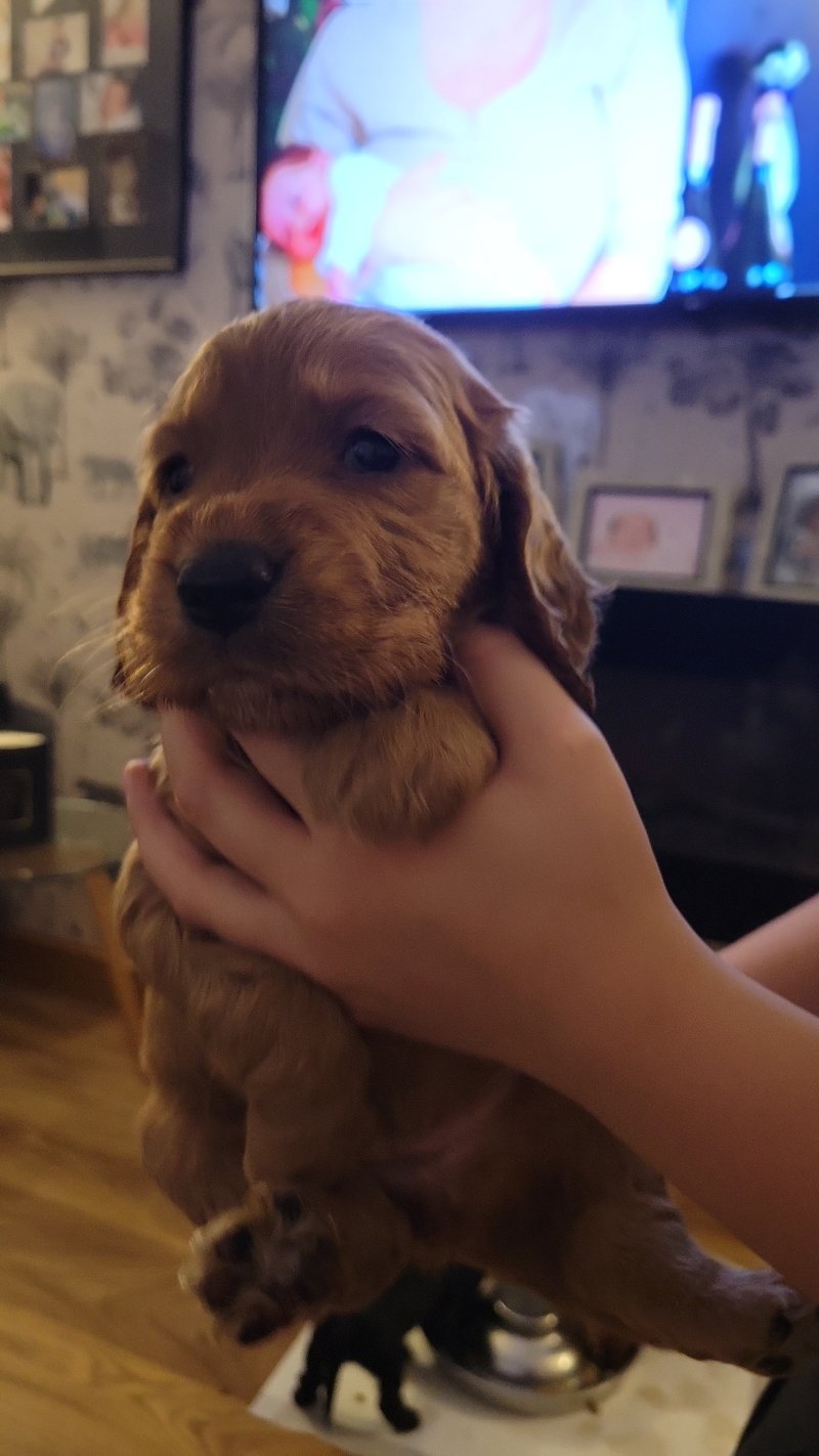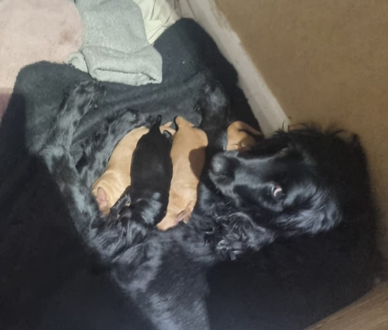 My bonnie has given birth to her second litter 5 healthy puppies they all sold the day they were born so we only have 1 ginger boy left