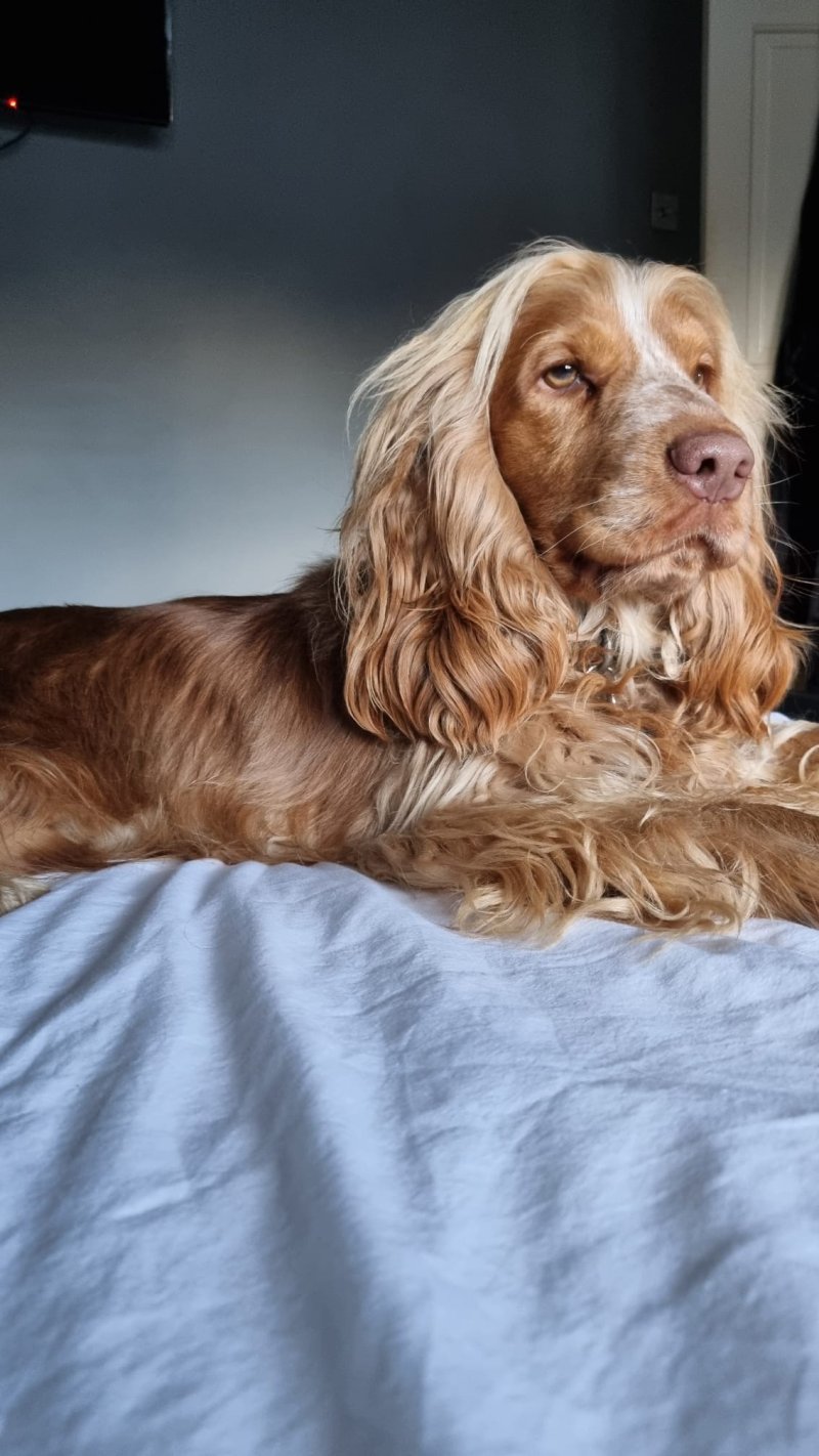 Daisy is a much-loved family pet, and a blue roan & tan sable with a fantastic temperament. The dad is a chocolate & tan sable KC registered stud dog, who is also fully health tested and eye tested and has a wonderful, gentle nature.