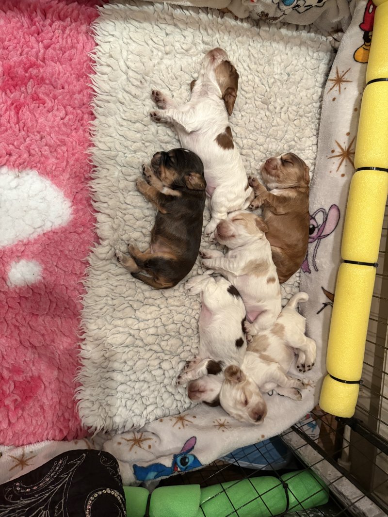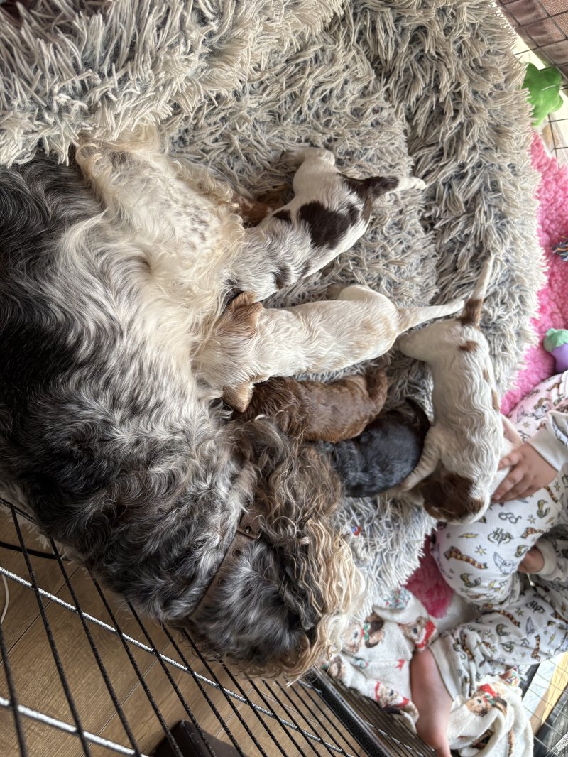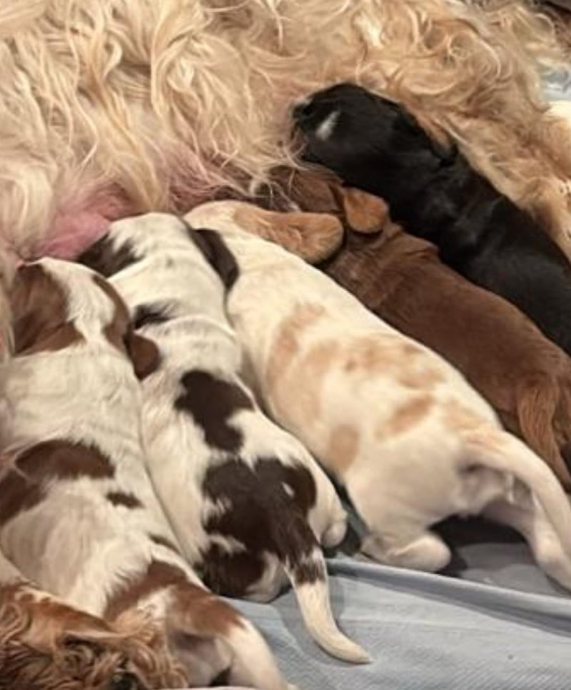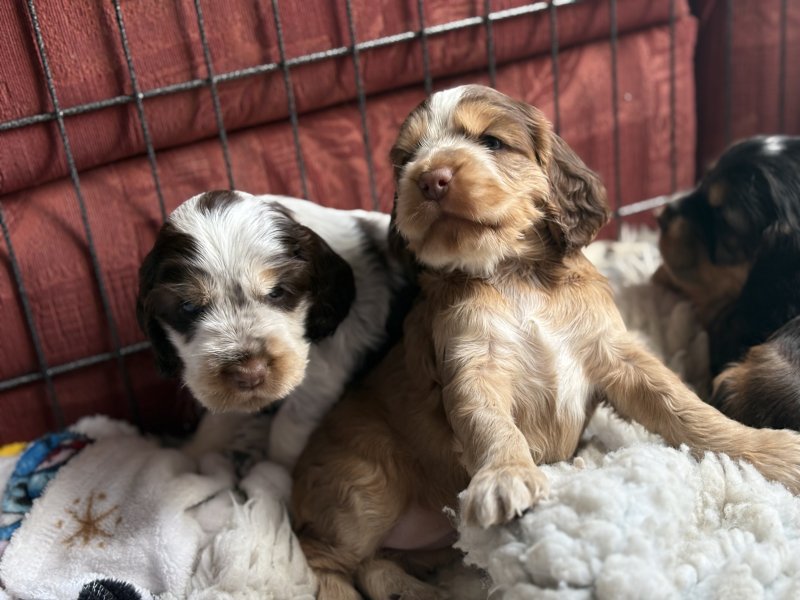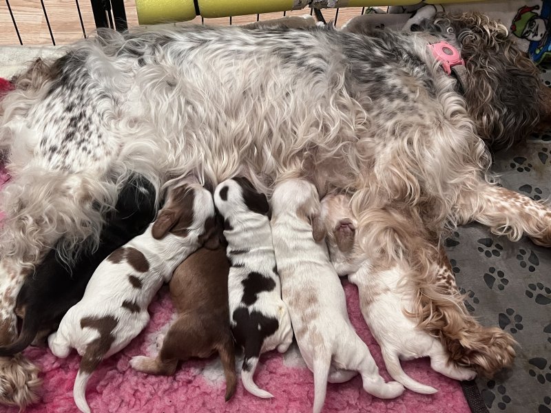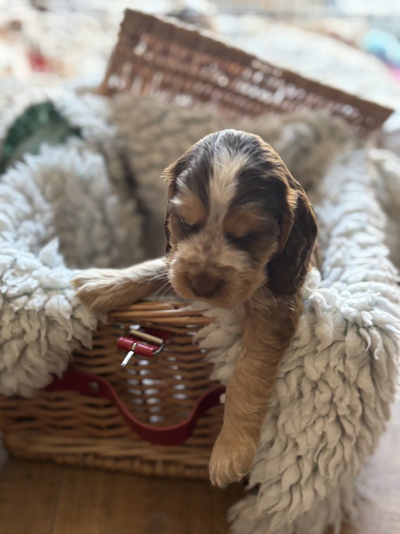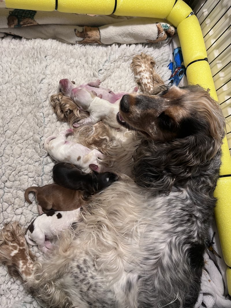 My beautiful KC registered show cocker spaniel Daisy has had a stunning litter of 6 gorgeous puppies in a range of rare and striking colours.
