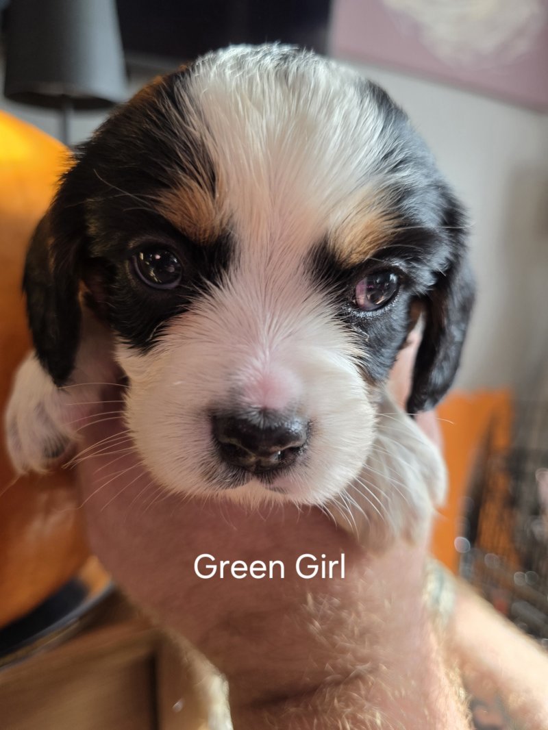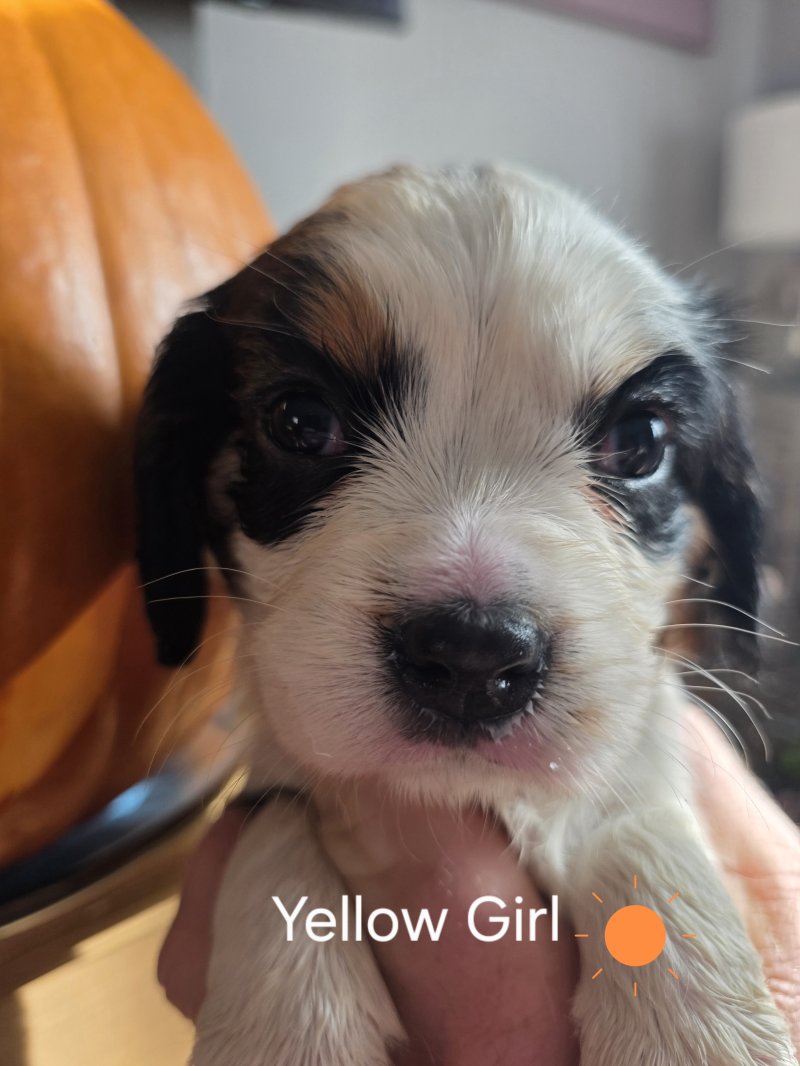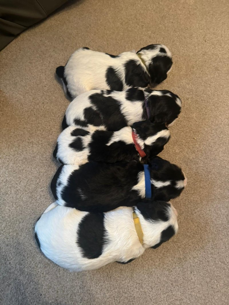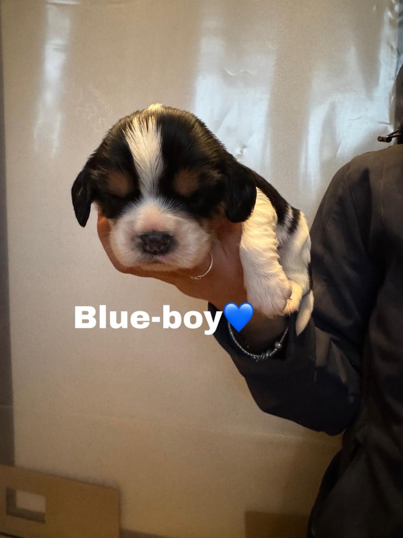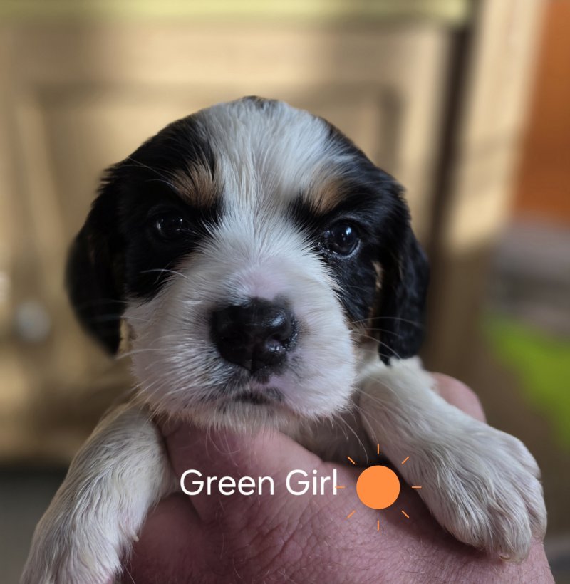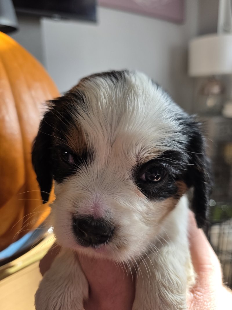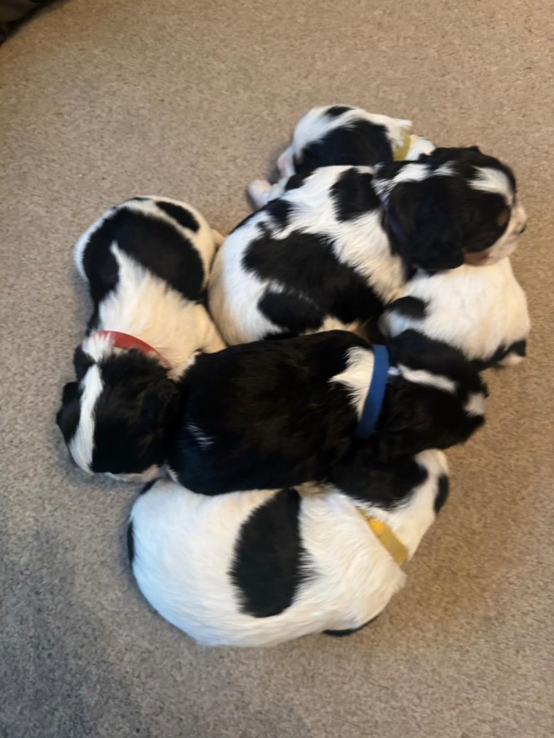 We have 5 beautiful cockerlier puppies looking for forever homes. Mum is a working cocker and is medium size dog Dad is a kc registered cavalier king charles spaniel he is medium size and is a family pet. we have 3× tri Girls 2 boys 1x tri-colour 1x black and white These puppies are being brought up in a family home with children and are use to everyday sounds of daily life, these dogs are ideal for families or anyone wanting a good companion. These dogs are very intelligent bread, and they are quick to pick things up quickly ie commands and toilet training. They are very gentle dogs and they are always eager to please they will happily fit into family life. Our puppies will come with all come with *vet checks *first vaccination *microchip *wormed *flea *2kg bag of food *blanket & toys with mum sent on Both mum and dad have been health tested and mum can be seen with her pups We are based in Hampshire and we would provide up weekly dates/ photos on your puppy and all the information you need to know up untill they go home with you. We will be taking viewings from now and ready for forever homes on 27th November recommend by pets4homes a deposit of £330 non refundable to secure your new loving pet. Any questions please do not hesitate to contact us we will happily provide more pics or videos on request or any questions you might have. Thank you for taking the time to read my ad
