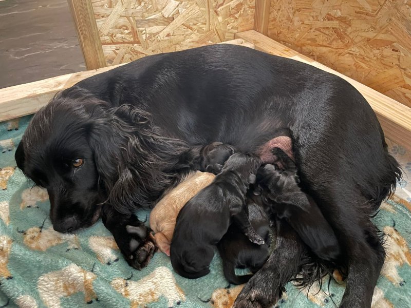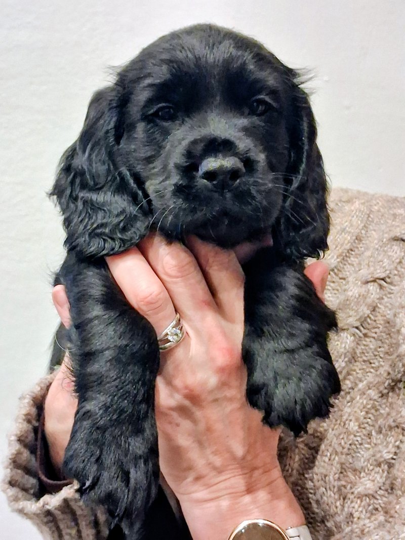 We have 2 stunning cocker spaniels ready to go to loving forever homes..One little all black female and one little lemon and white male. They are heath checked, wormed, microchipped and had their 8 week vaccine.