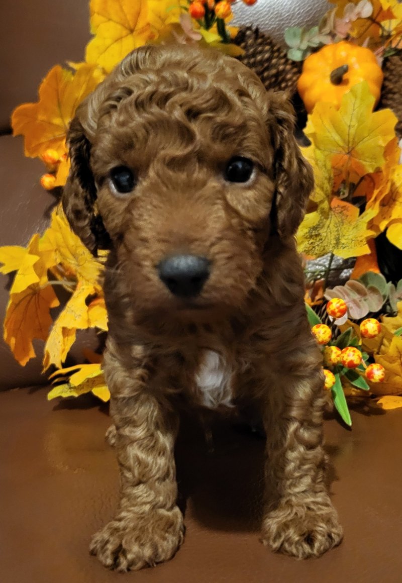 Dad is KC registered, five generation pedigree red toy poodle, standing at 15” tall. He is health checked and hereditary clear.