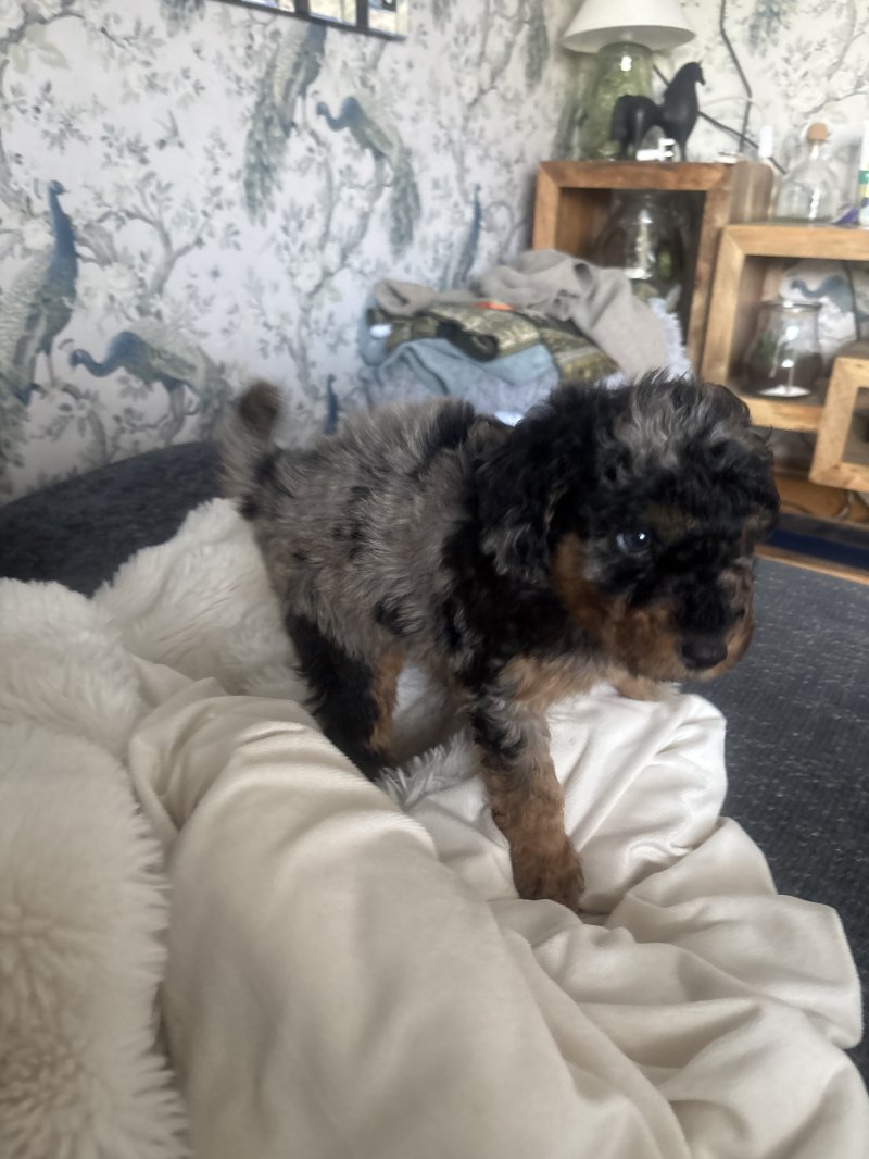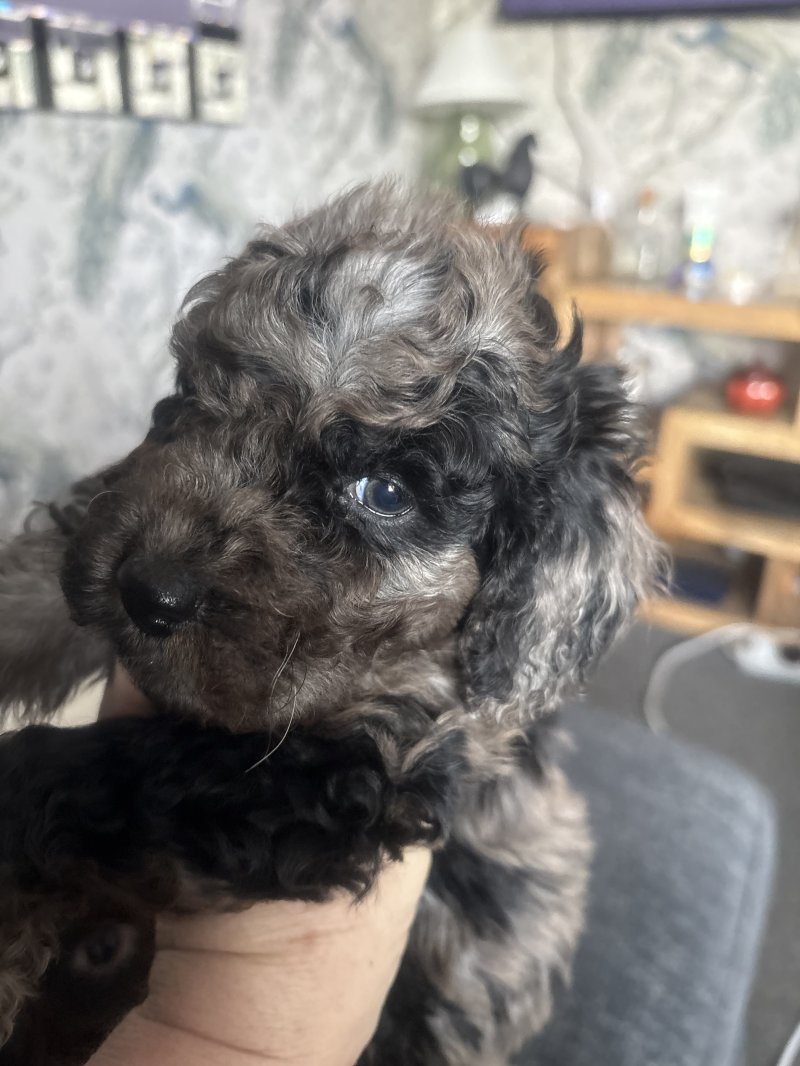 2 stunning male cockapoo puppies looking for their forever homes! Both are rare Merle colouring and have been lovingly raised in a busy family home so they’re well socialised, confident and used to everyday noises and cuddles. Fully health checked by vets and wormed.