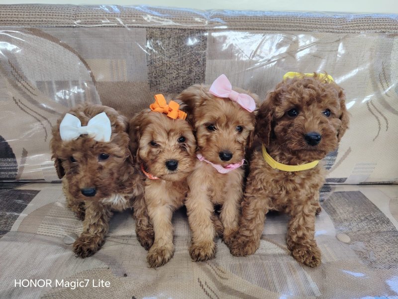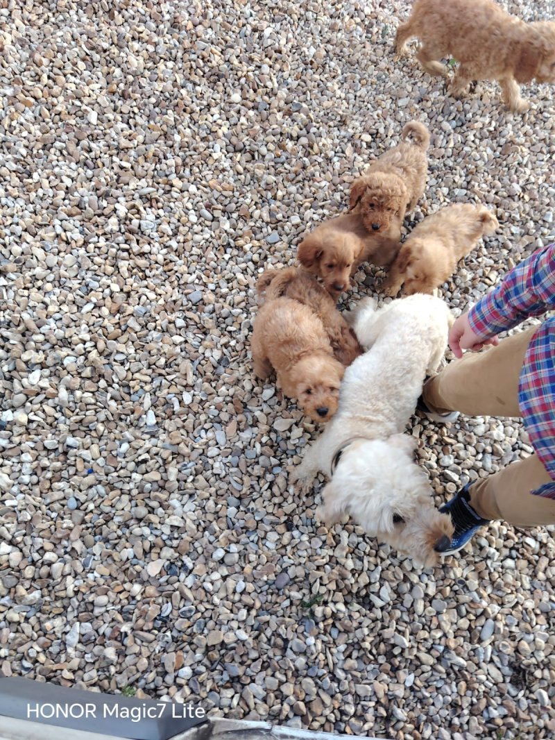 READY TO LEAVE ! Beautiful Litter of Puppies - Our girl has had a gorgeous litter of 5 puppies - 1 boys and 4 girls They are all healthy, happy, and already showing their own lovely personalities. Mum is our girl she's a cockapoo And dad is a stud red miniature poodle Raised in a family environment with children and other dogs, they'll have been well socialised and have the sweetest temperaments. they love to wander, play, and explore! they have had there two vaccinations Been Microchipped Flead and worm treated Each puppy will leave with: A blanket with mum's scent (to help them settle in) One of their favourite toys Please message or call for more information or to arrange a visit.