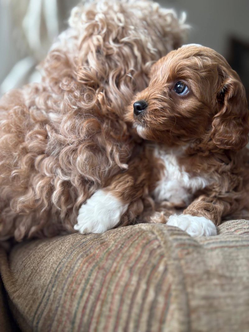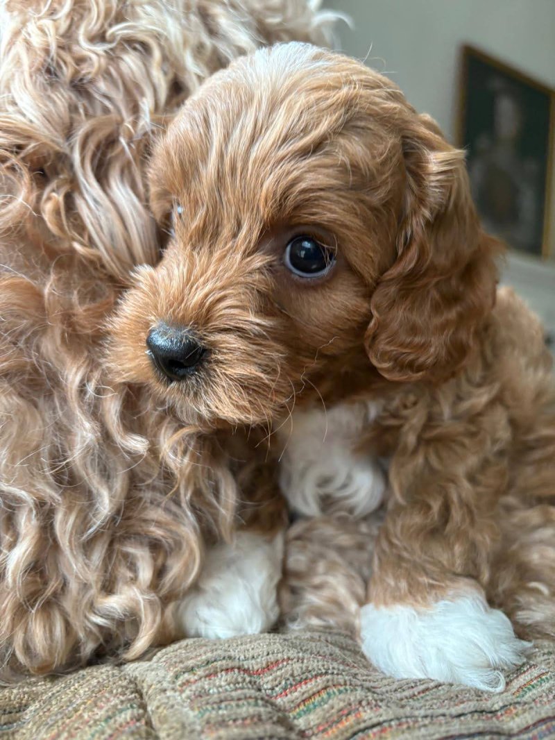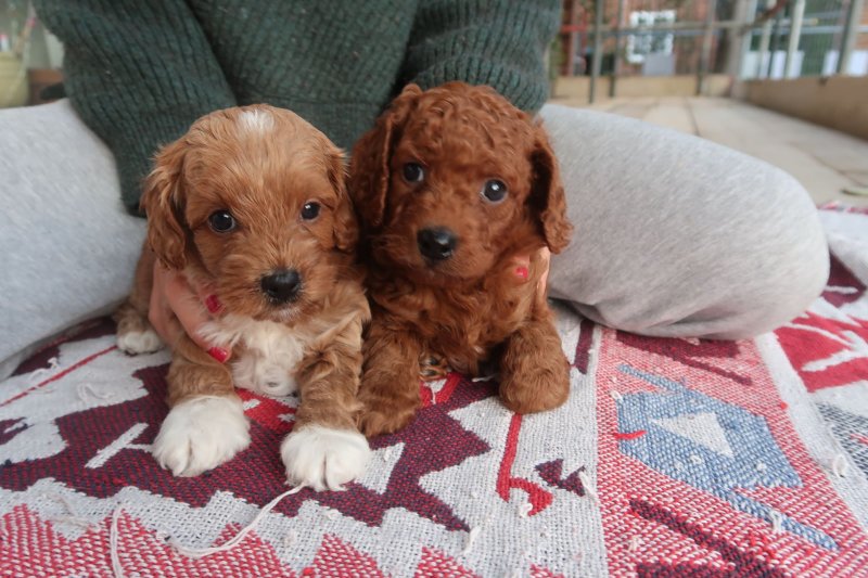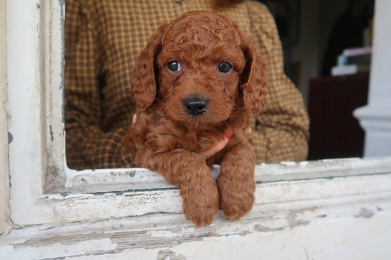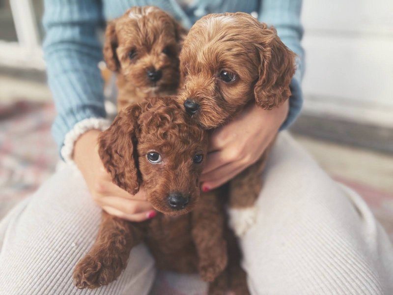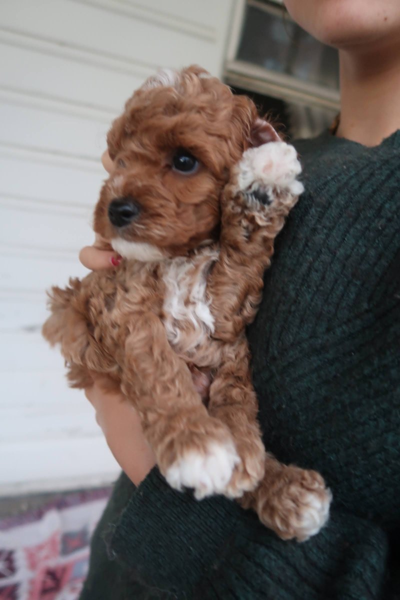 We have six half-Asian toy poodle Cockerpoos. These are specially bred for the "teddy bear look" faces with rounder snouts and big round eyes. They are also smaller than standard toy Cockerpoos and have a calmer nature.They are all absolutely gorgeous and we love them to bits. All have curly hair, great proportions and very sweet teddy bear like faces.