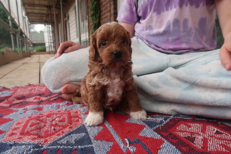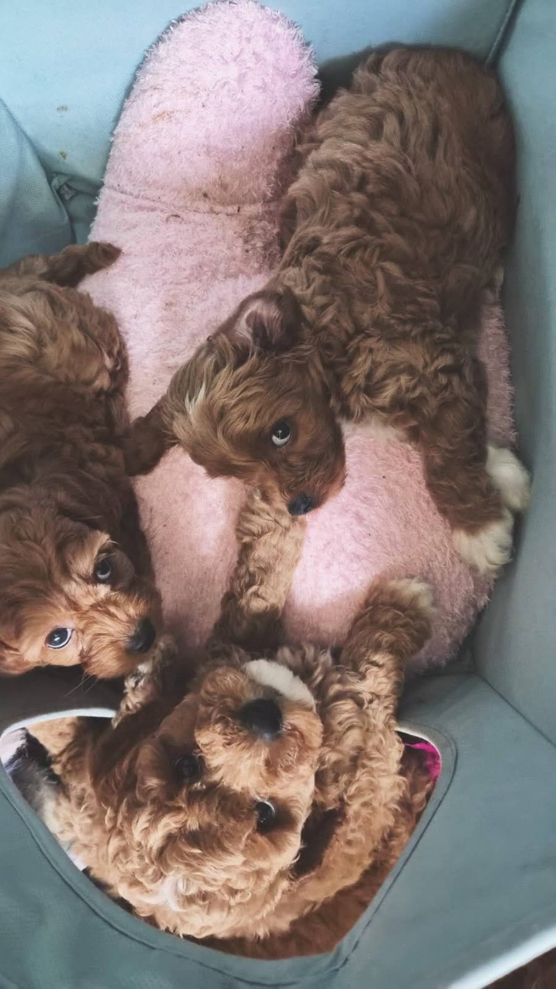 We are family breeders and these pups are treated like family from the first day of their lives. They have been loved and adored by all of us. There has been lots care, knowledge and experience put into bringing them up. We made sure they are safe, comfortable and healthy. We gave them lots of attention and affection. The puppies are very friendly, calm and love people, especially children. They are also confident, bright and learn very quickly. They are toilet trained, eat solid food and sleep through the night. We made sure they are used to all sorts of noises and are well socialised. They grew up in the house with children, other dogs and cats. They are used to car drives, meeting new people and are friendly towards our two cats. The Pups were part of some puppy therapy and puppy yoga sessions which was great fun for them, as well as an opportunity to socialise with new people.