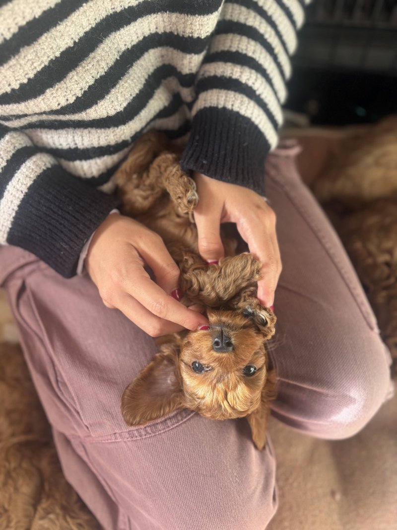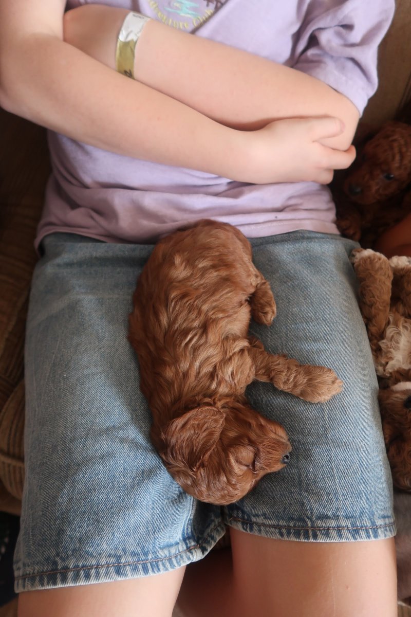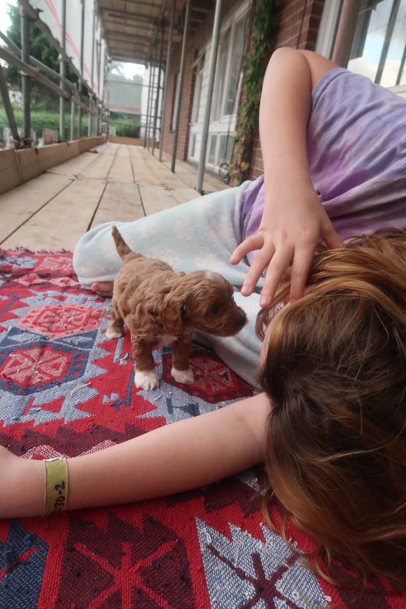 This is our 5th litter and we are proud to say we are in touch with most of our puppies and they all grew into amazing Cockerpoos. All our dogs are very healthy, happy, friendly and have strong bond with their families. MUM Summer - the puppies’ mother is our family dog bread by us. She is a very special toy Cockerpoo. Incredibly loving, loyal and very intelligent. Her recall is amazing! We are very proud of her. She is a small Cockerpoo, just under 7kg with curly cream hair and big eyes.