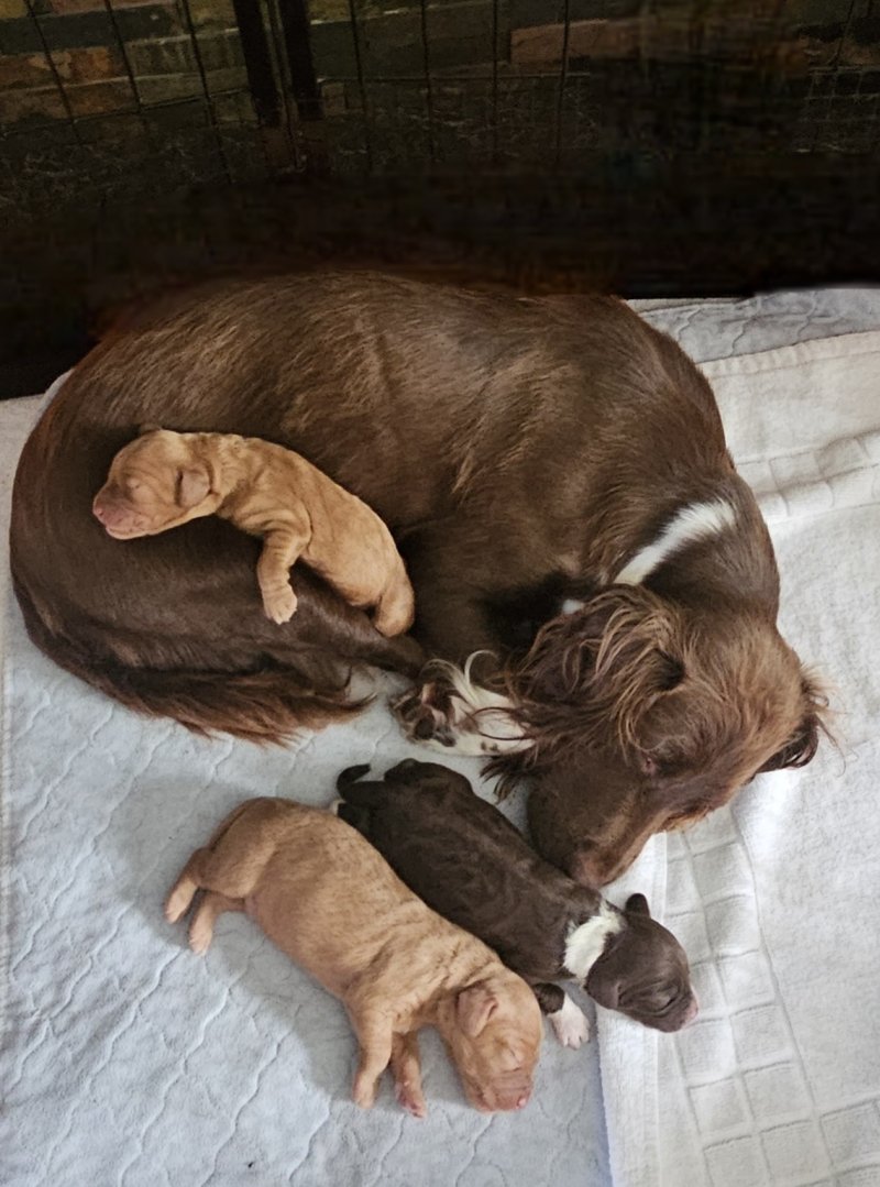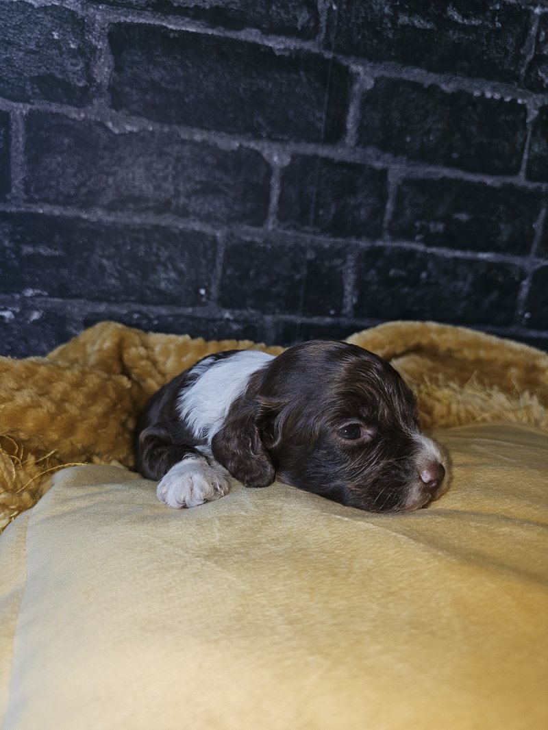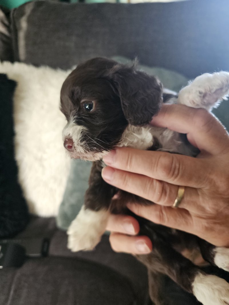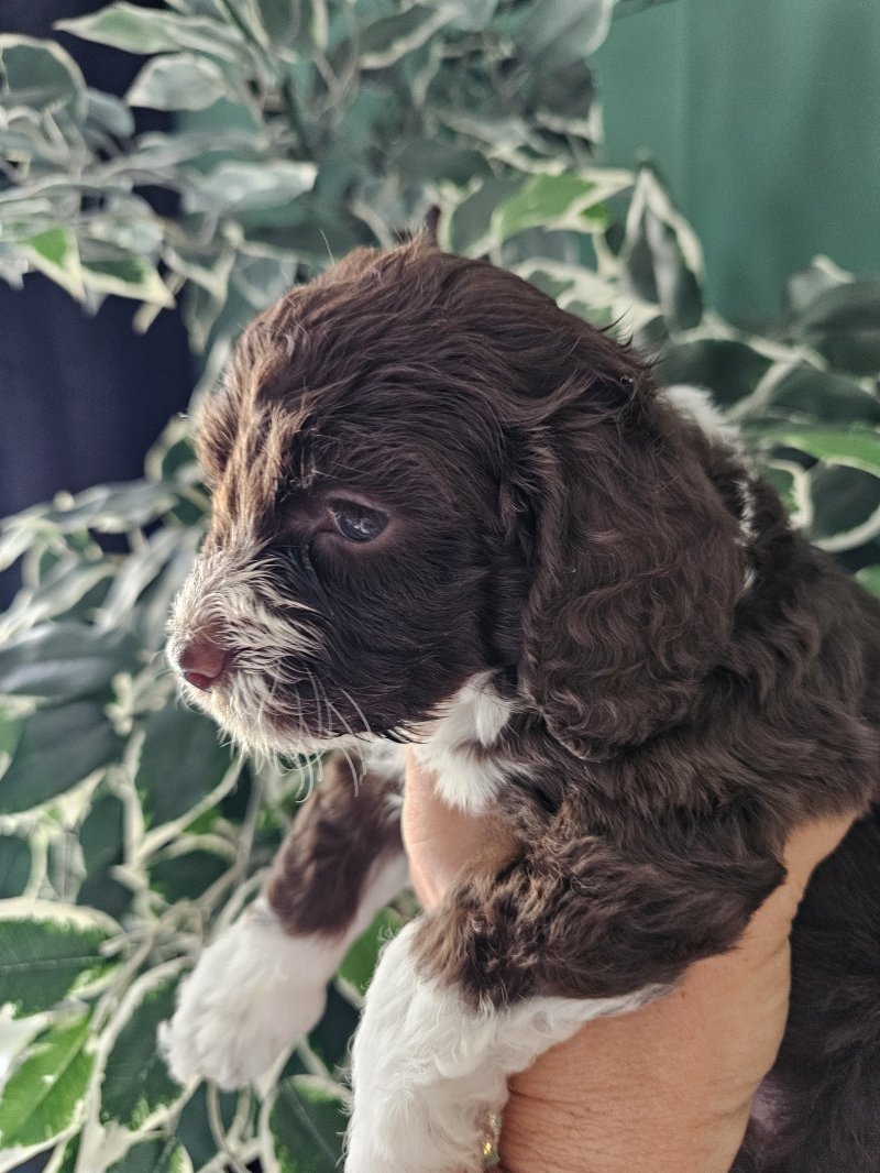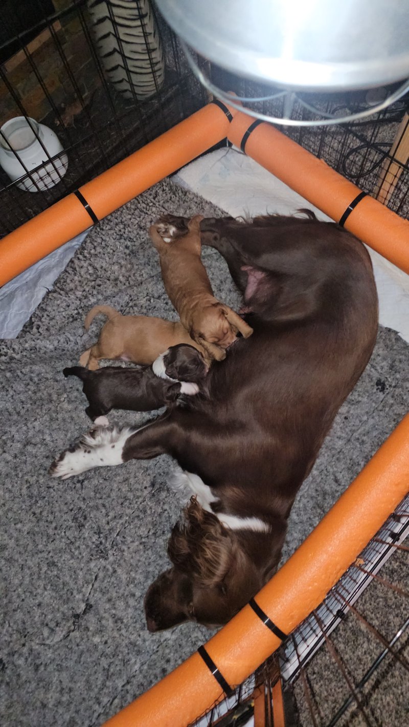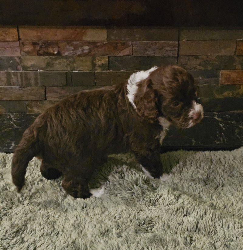 River is Chocolate with white bib, collar & Paws she is the most sweetest little lady