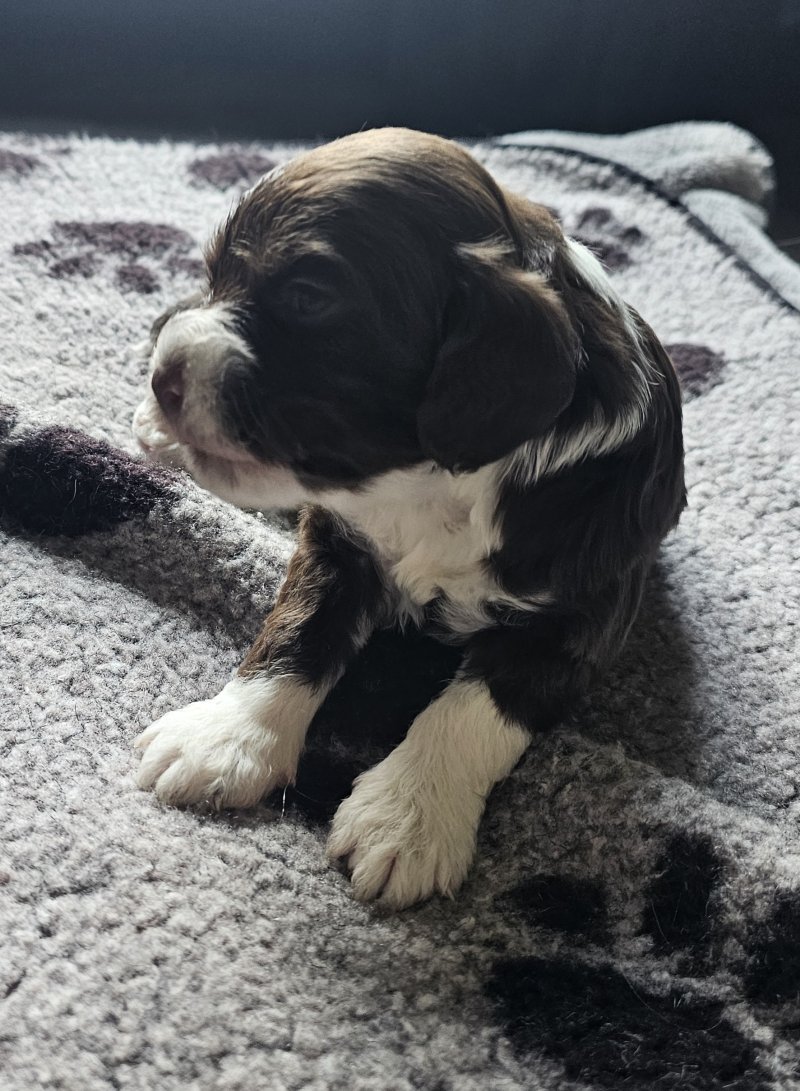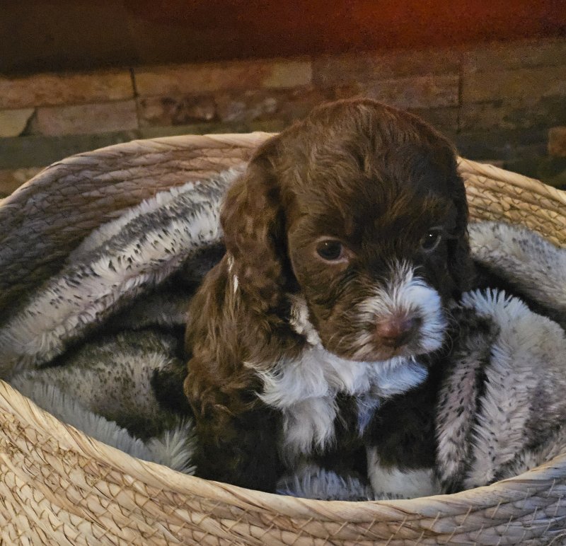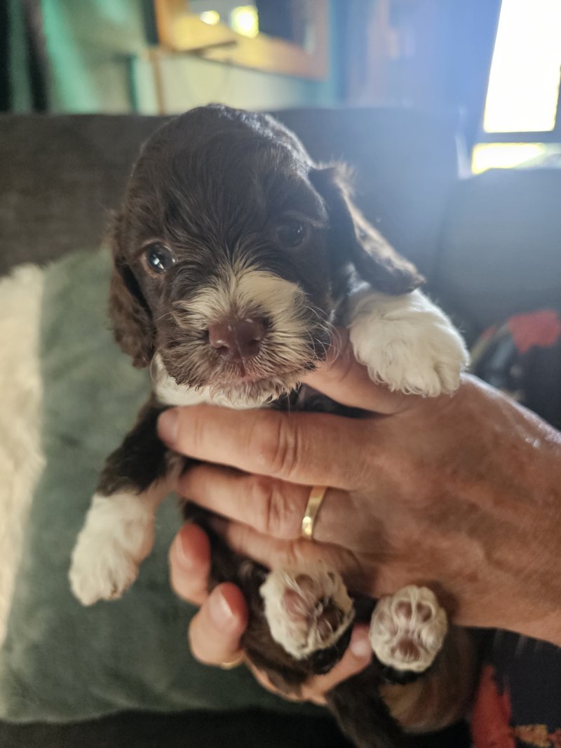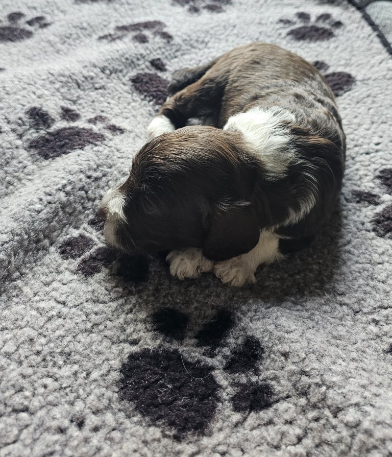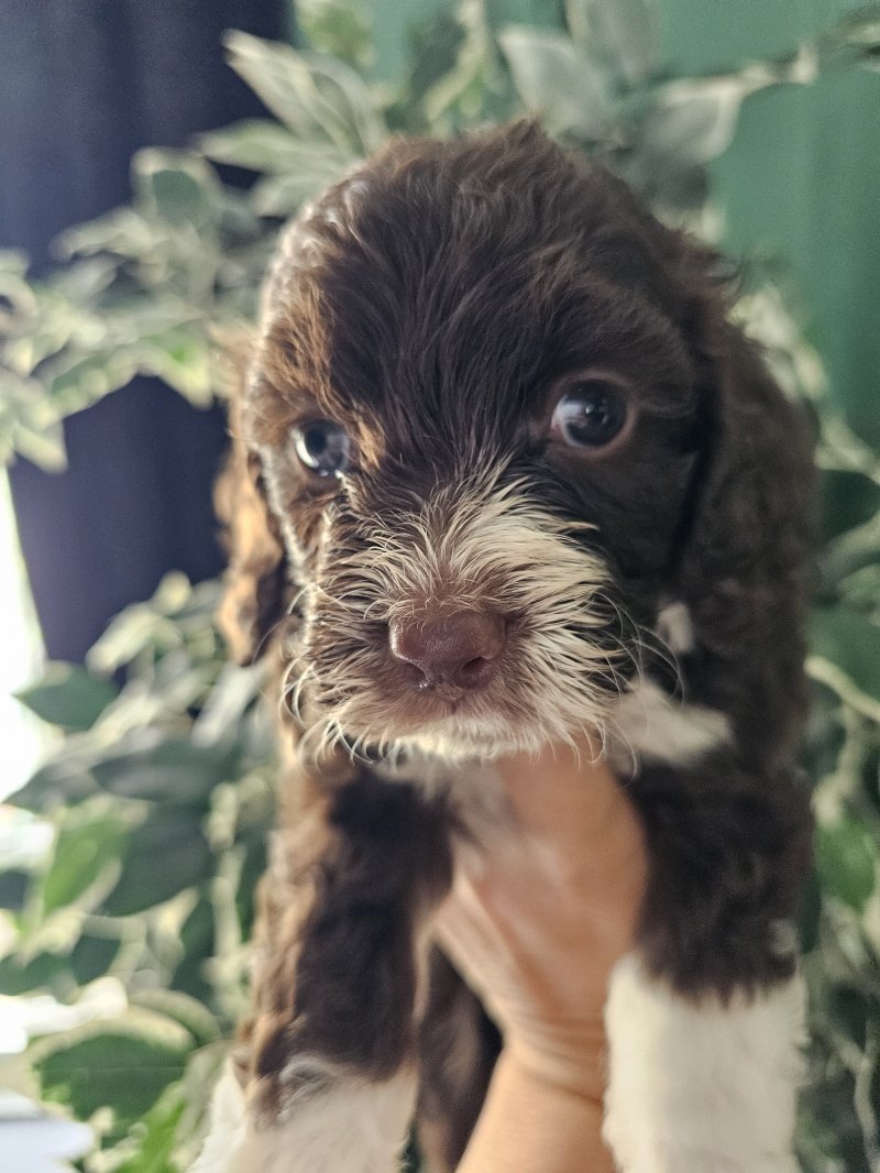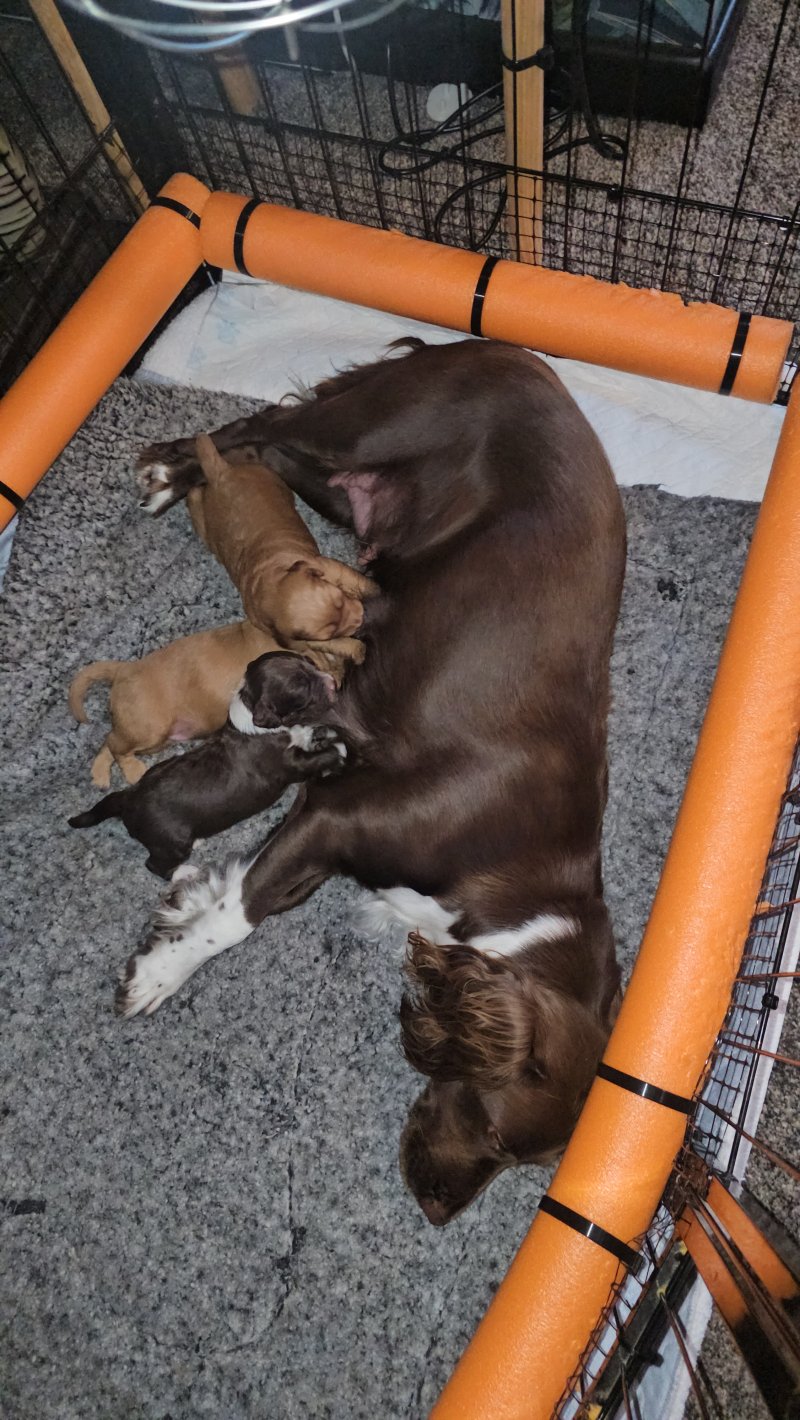 River is Chocolate with white bib, collar & Paws she is the most sweetest little lady