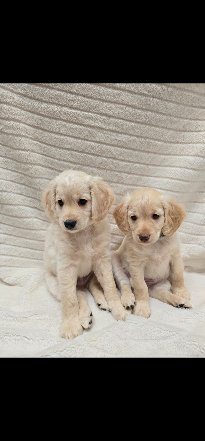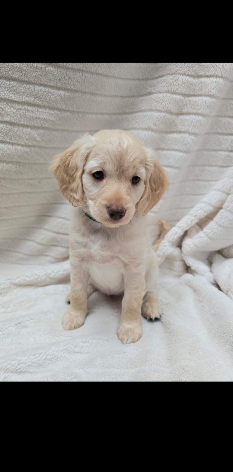 We're excited to share the arrival of 8 gorgeous Cockapoo F2 puppies. Born on Bank Holiday on the 25th August 2025. 6 beautiful girls: 2 black girls (pink and purple collar) 4 cream girls (green, yellow, red, orange collar) 2 handsome boys: 1 cream boy (black collar) and 1 cream boy (blue collar - sold). Mum Kali is Cockapoo F1 with black curly hair. Mum is a much-loved family pet with a sweet, affectionate and loving nature. She has an excellent temperament, she's intelligent, loyal and the best mum you could ask for! Mum is doing a fantastic job raising her precious babies, and we couldn't be more proud! Dad is Cockapoo F1 with a cream curly hair, who also a has an excellent temperament. The puppies will be ready to leave us from Friday 24th October, with the following: - fully health-checked - first injection - microchipped - worm. A non-refundable deposit of £250 will be required to reserve a puppy. The puppies are still so small I would invite you to make an appointment to view them after they are 5 weeks old from Monday 29th September. We will also keep you updated with photos and notes as they grow.
