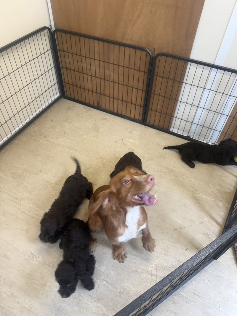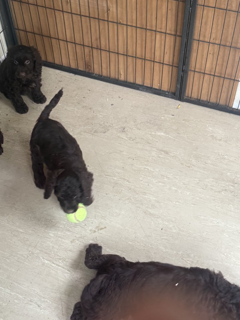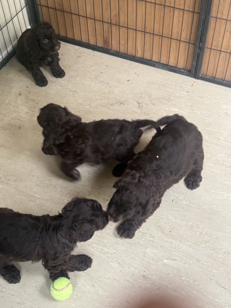 stunning f1 Cockapoo puppies family reared 7 lovely chocolate boys & 2 girls lovely available puppies will have hypoallergenic fleece like coats ideal for allergy sufferers non minimal shedding mum is a golden working cocker spaniel kc reg dad is a stunning chocolate miniature poodle kc reg pra eye tested clear both parents have a lovely temperaments puppies are microchipped flea treated and wormed to date call for more details