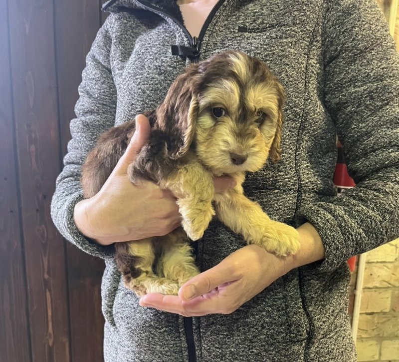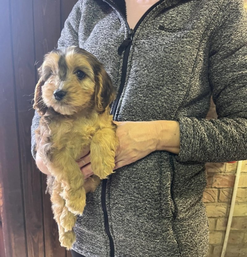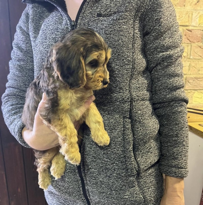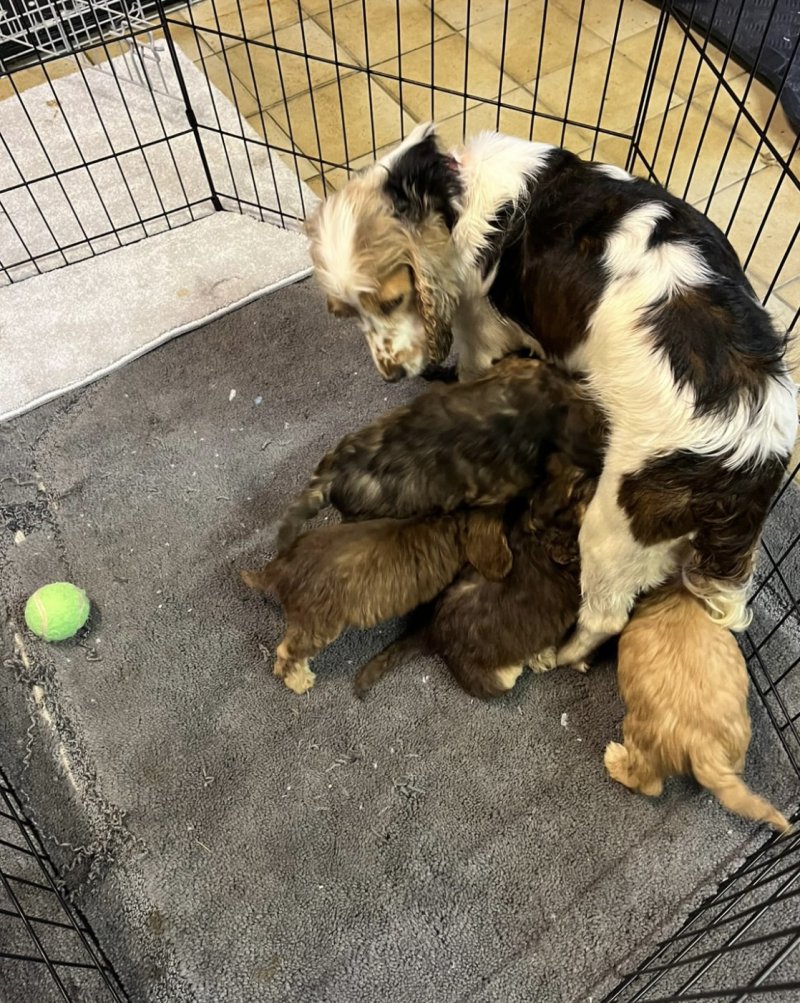 Mum is our kc reg health tested show cocker. Tri colour . And dad is health tested kc reg red miniature poodle . Pups are eating and drinking independently and doing well. They have had there first vaccination and second is pre paid. Pups will leave with there vet health records and chip details some of there food and a comfort blanket.