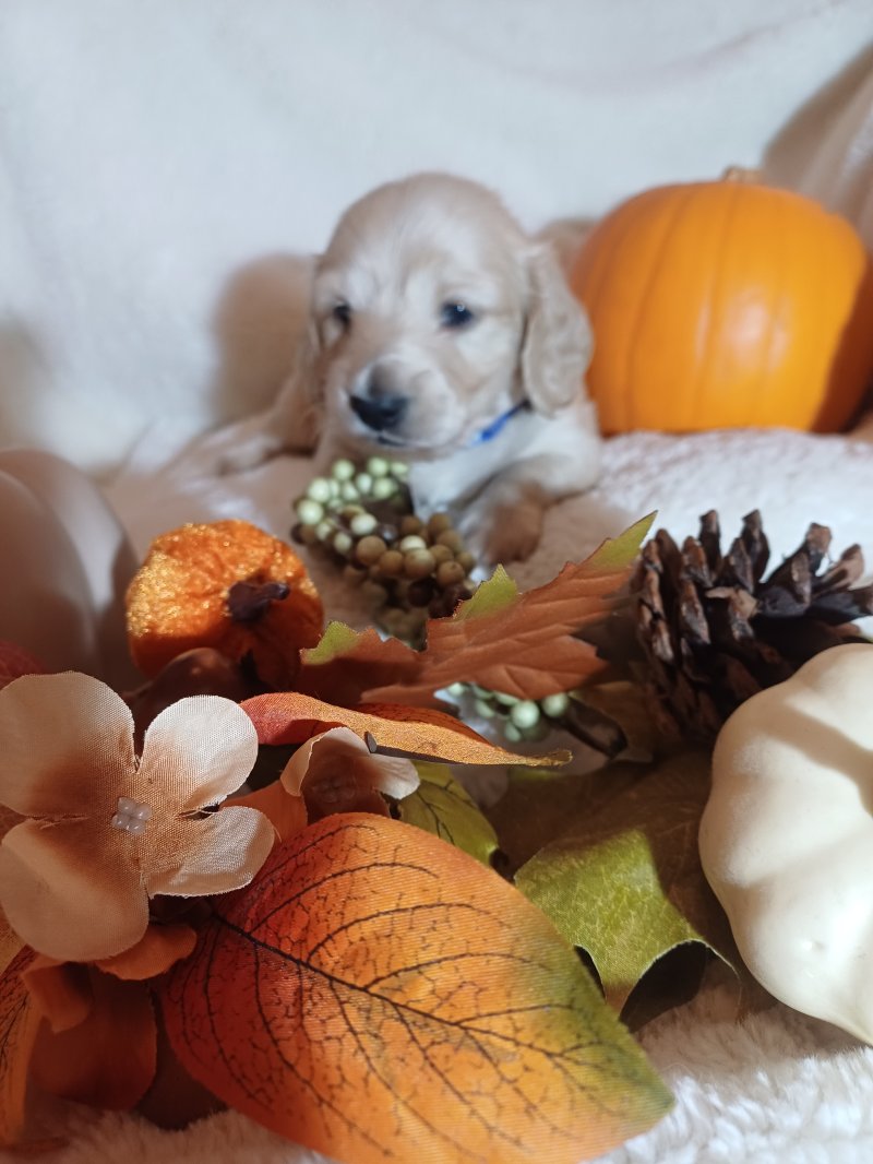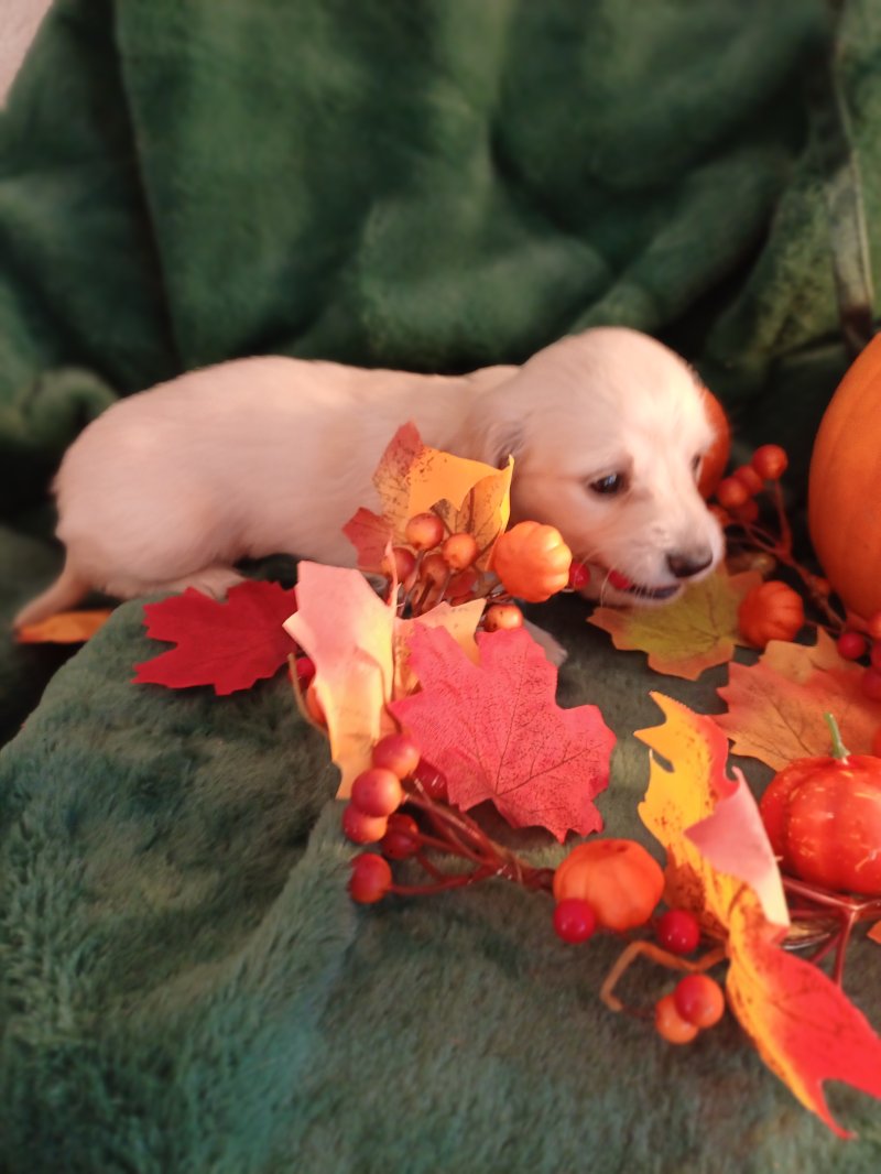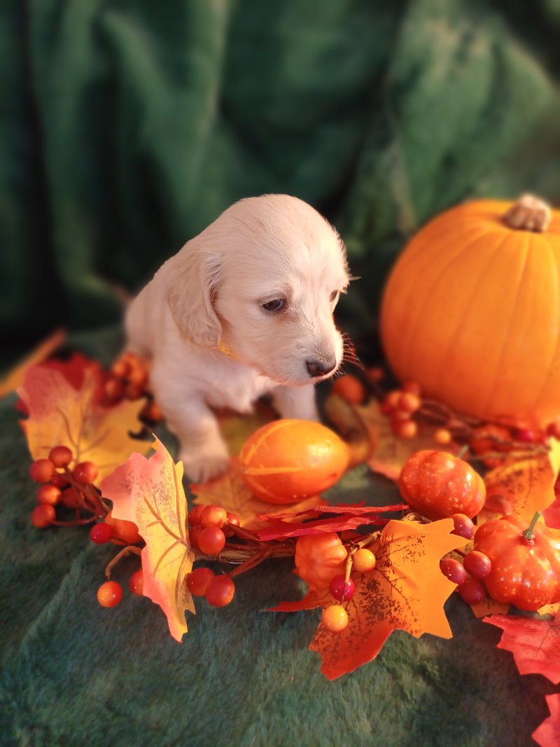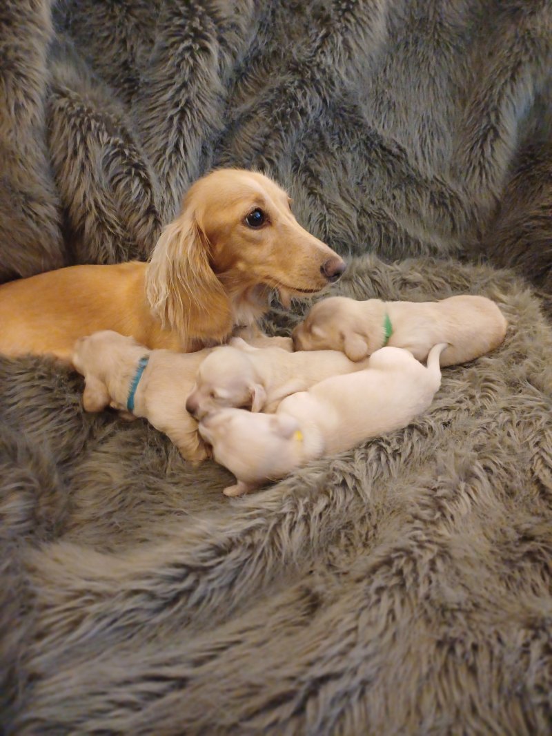 4 beautiful cream no shading long haired Dachshund.