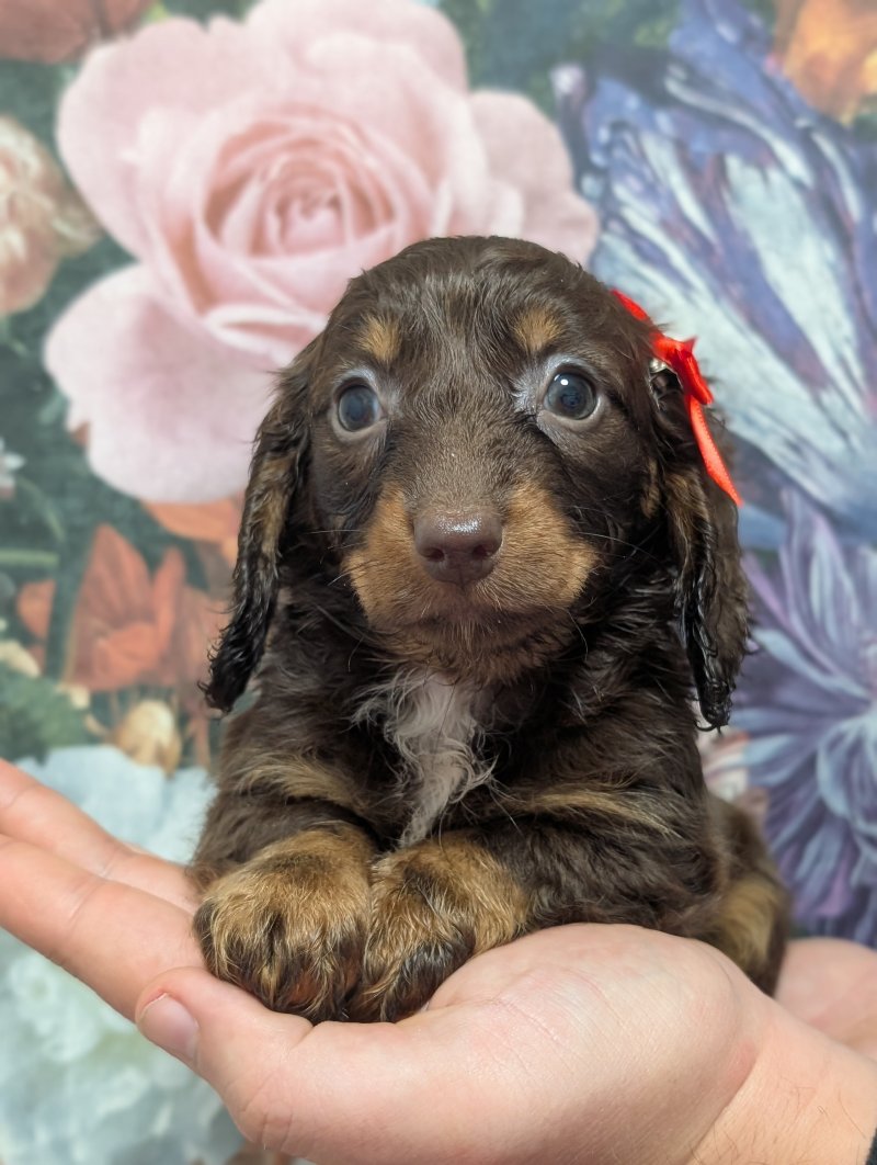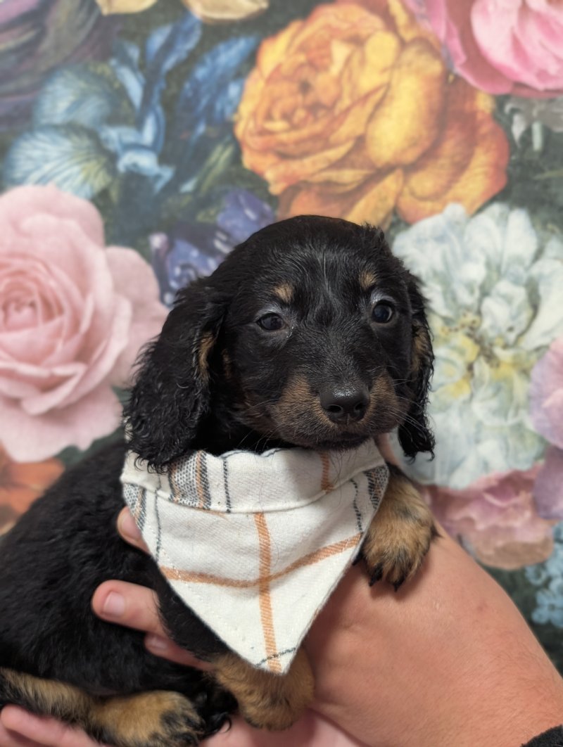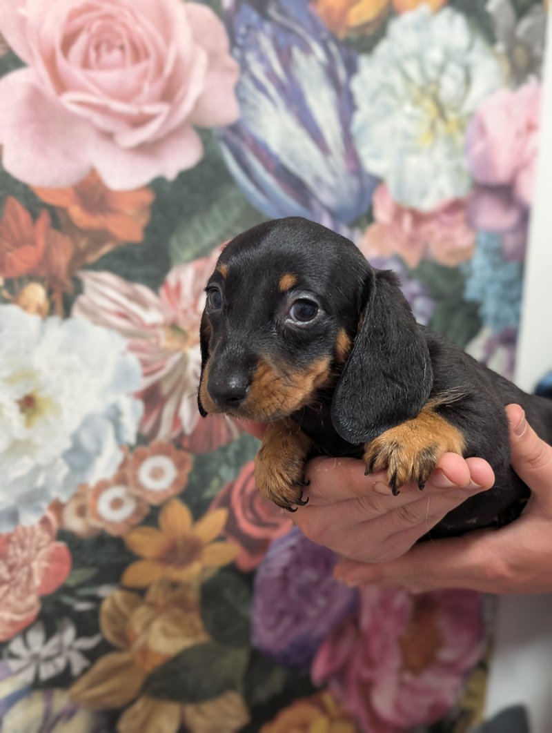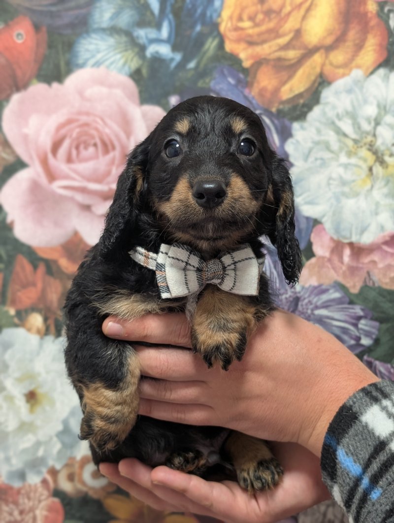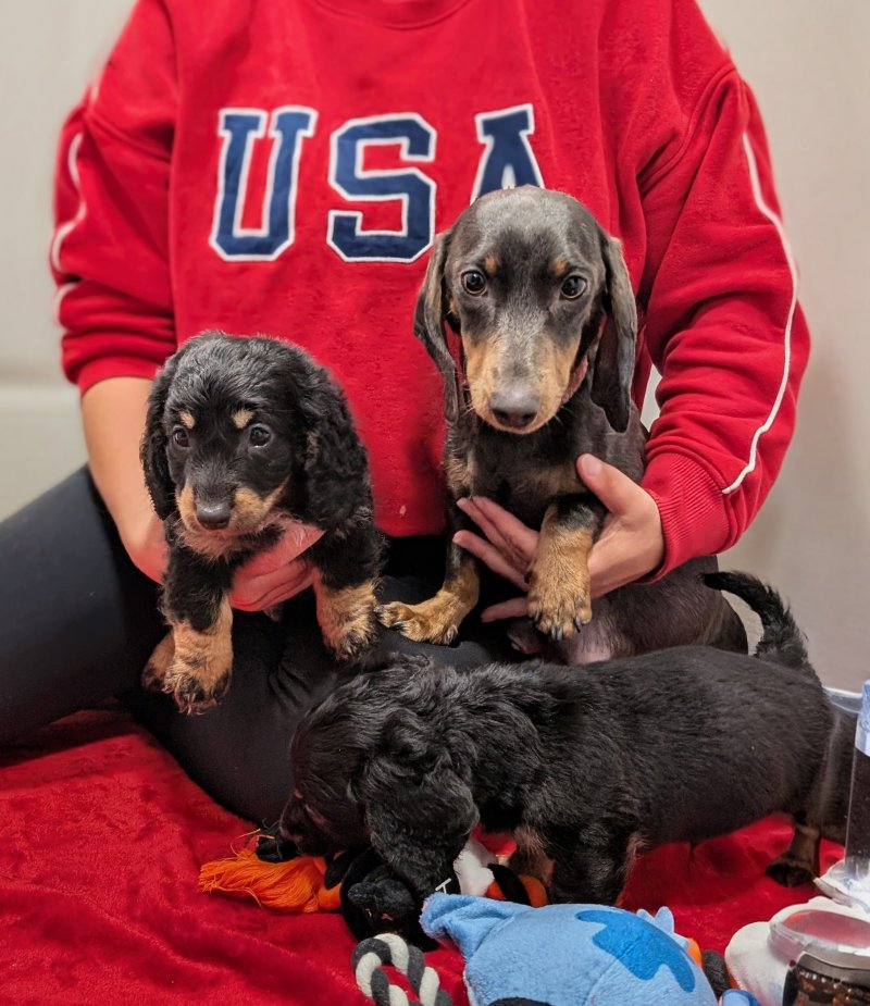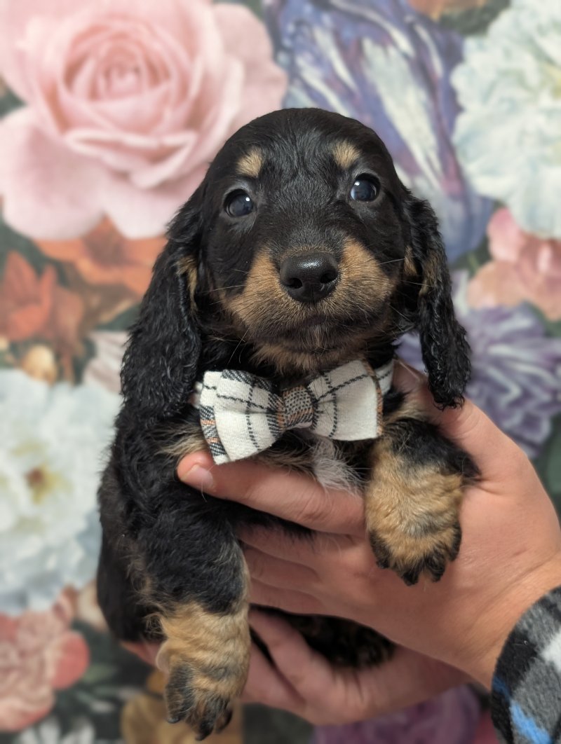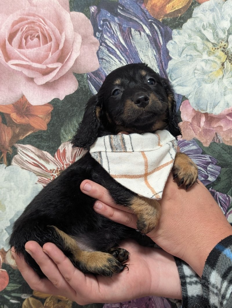 A bit about Daddy of the puppies. His name is Sam he is just one of a kind he is a long-haired, black and tan Dachshund you can see him in the video he is such a wonderful little boy. He is so cuddly. He also has a wonderful temperament with people and children he is such a comical character absolutely love him!
