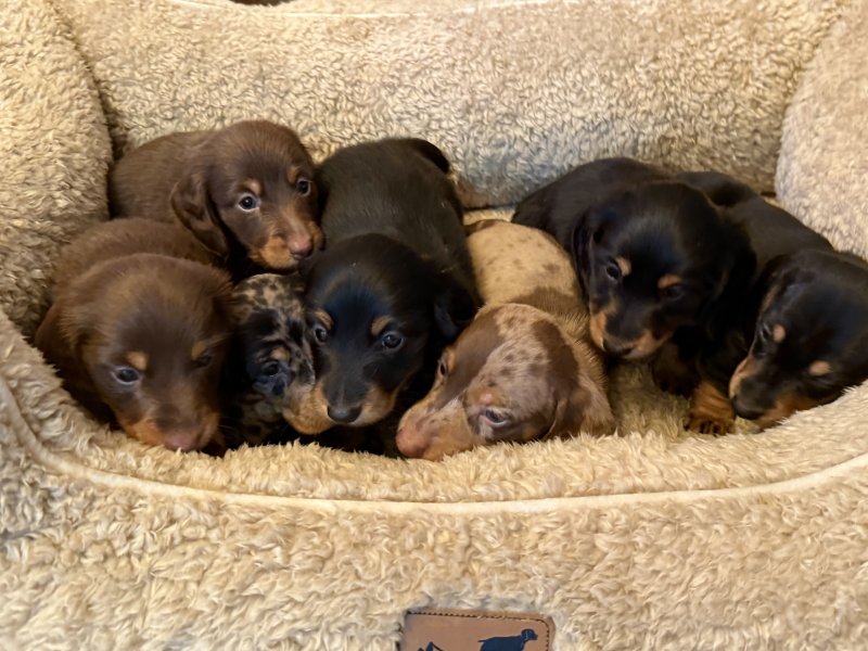 Our beautiful dapple miniature Dachshund girl has given birth to seven amazing puppies from outstanding bloodlines!