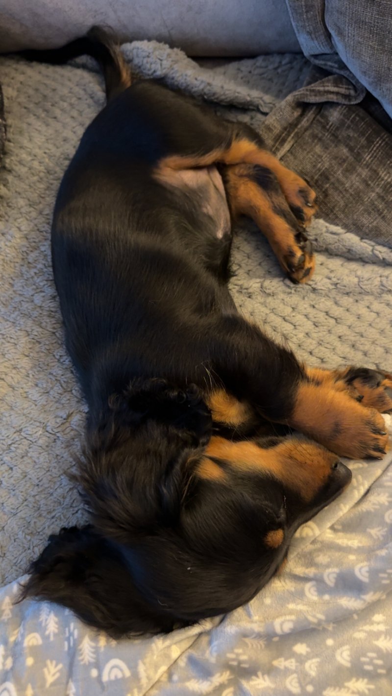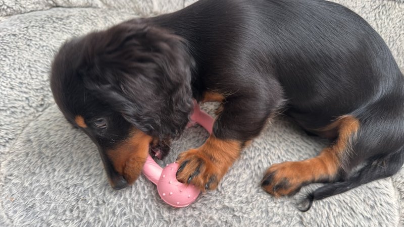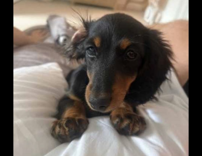 She is up to date on her vaccinations and has a microchip. Both her parents are full dachshunds. She enjoys lots of attention, cuddles and playing with toys. She is good with other dogs and children. Absolutely stunning dog.