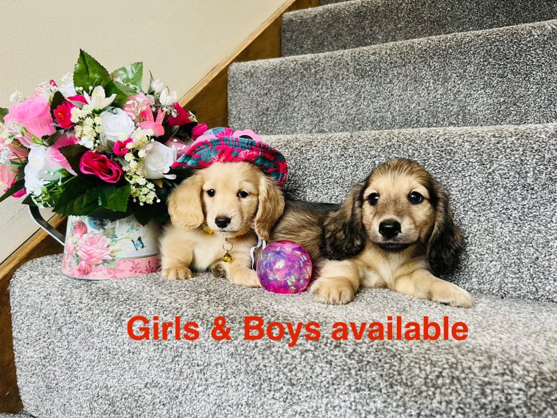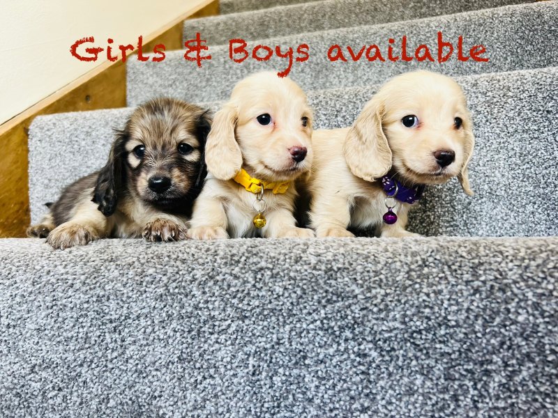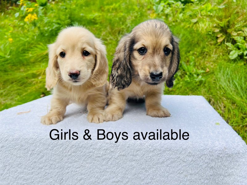 We have a gorgeous litter of long-haired minuature dachshund puppies available. They will be KC registered and are PRA clear.