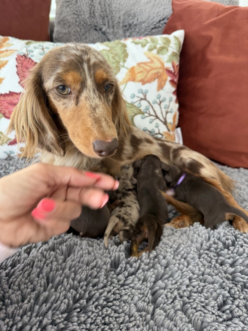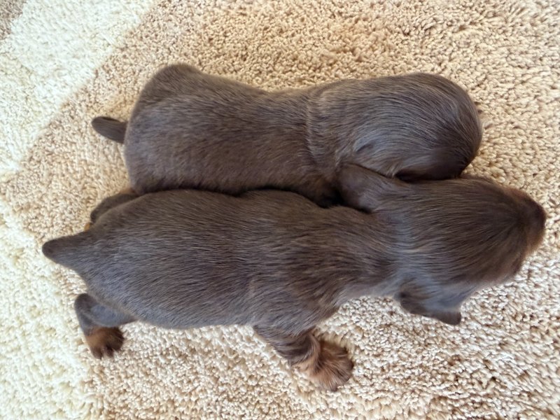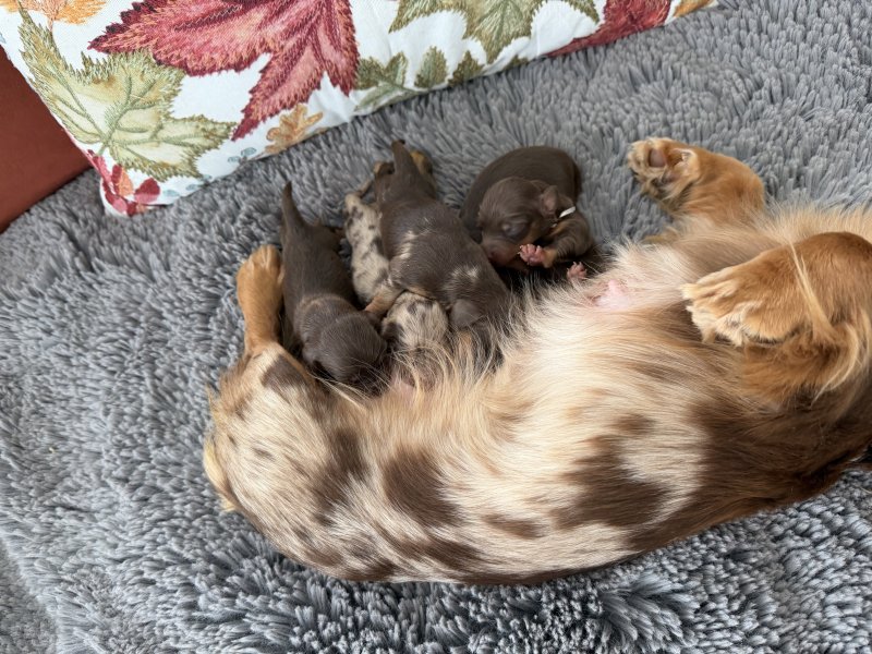 Mum is dapple dad is chocolate and tan both long haired as will all these puppy’s