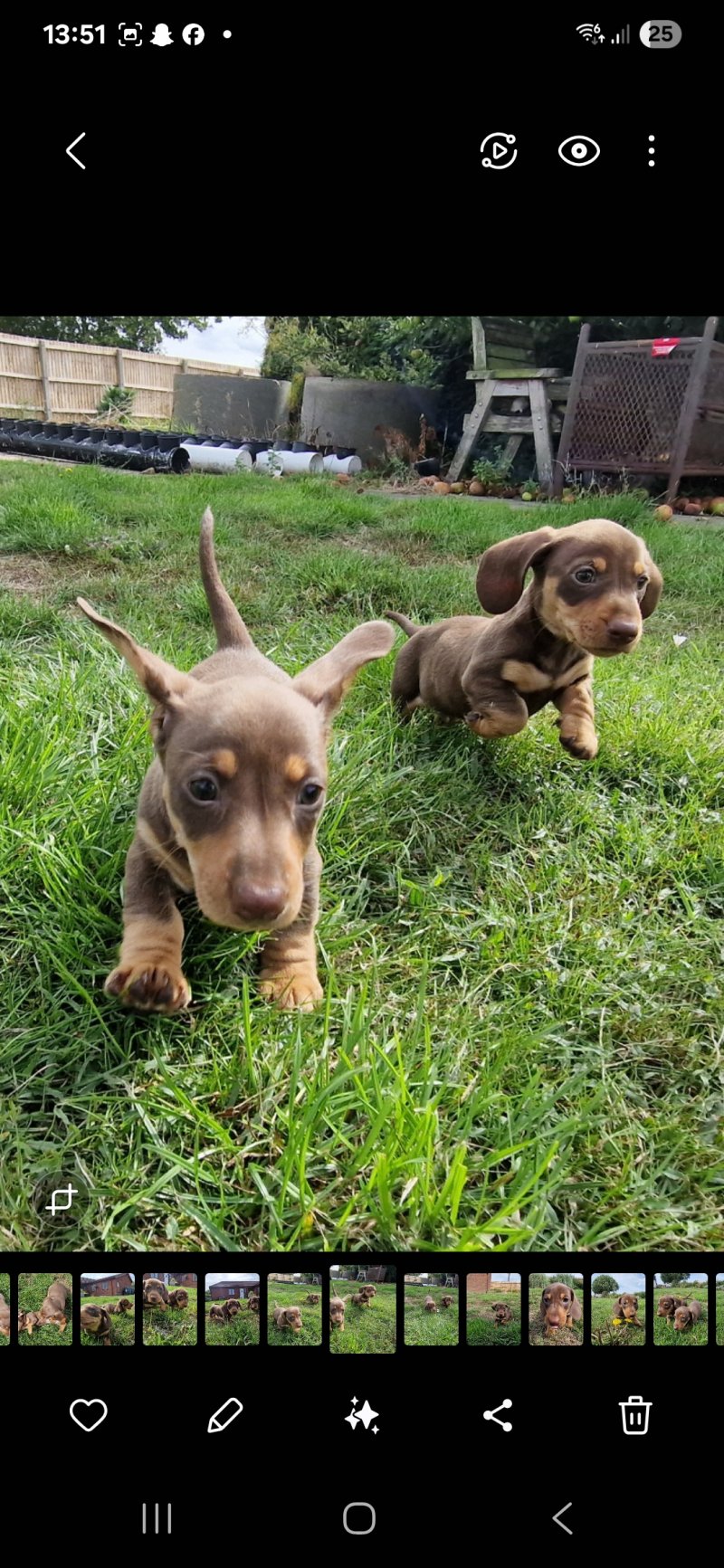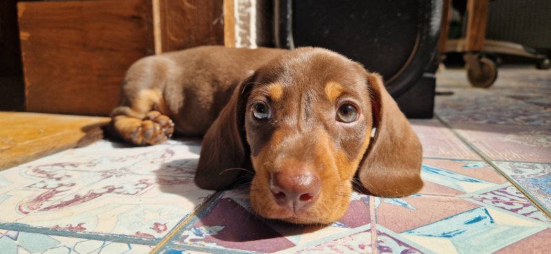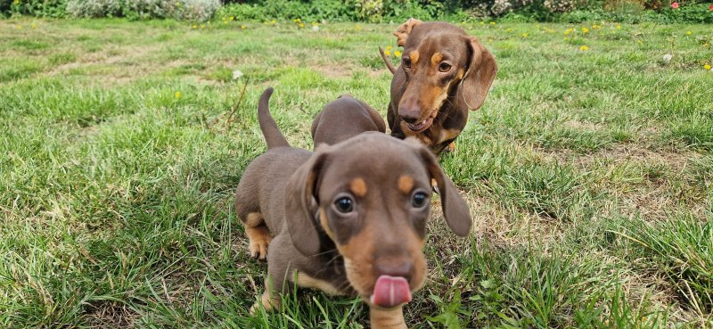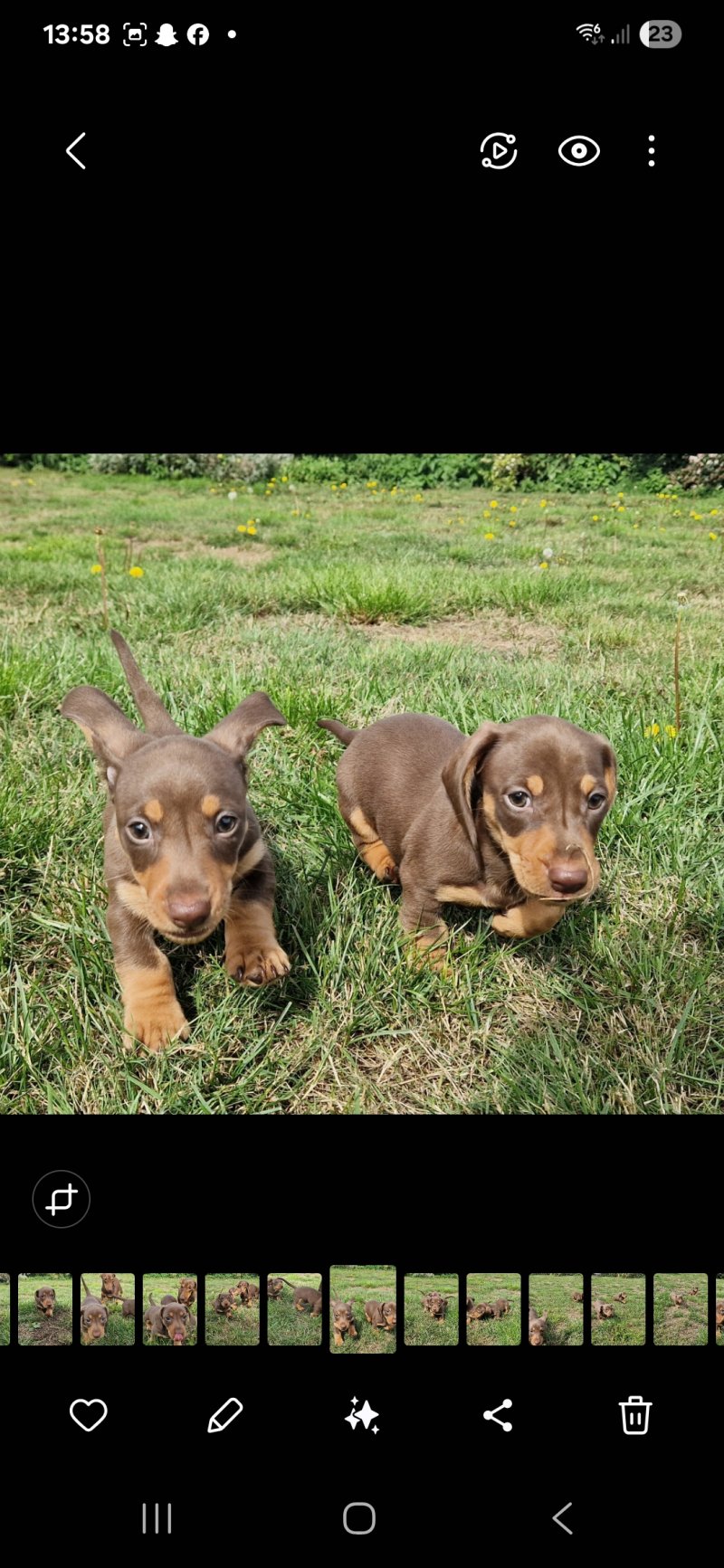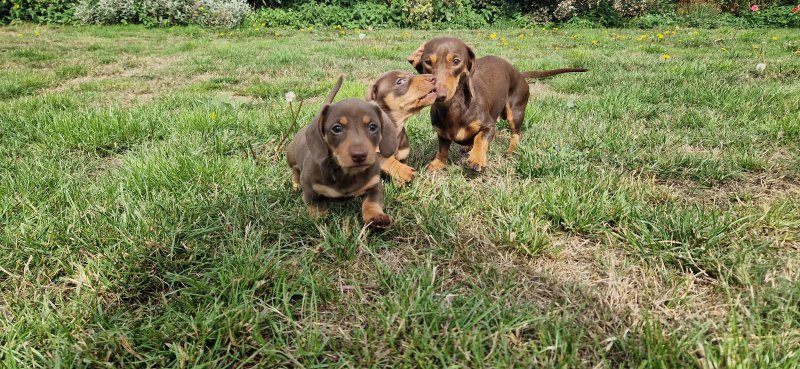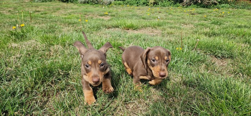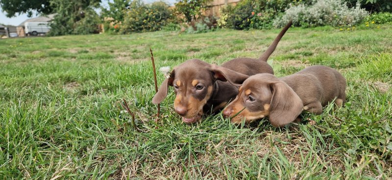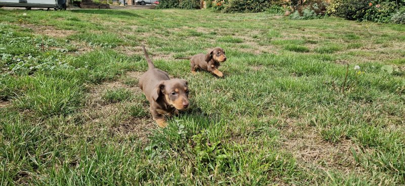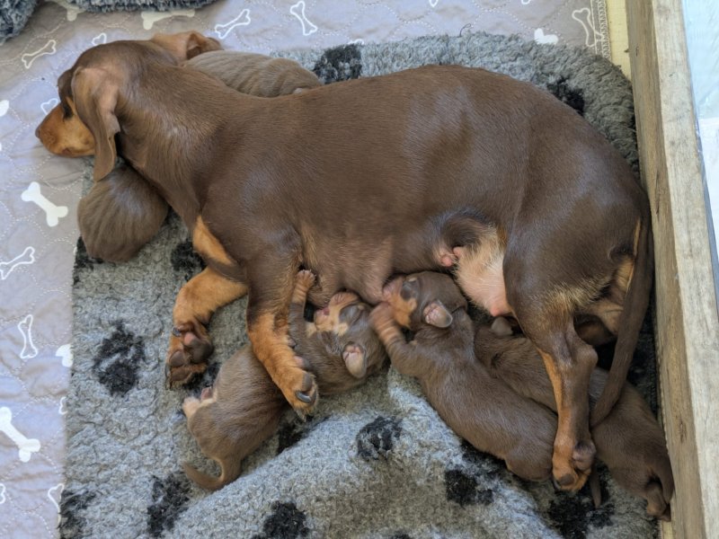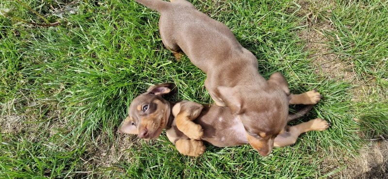 given birth to 5 chocolate and tan puppies 3 girls and 2 boys. I have grandma and sister all three girls are 4 kg true miniatures. All from champion lines. Dad is master Duke also miniature and champion lines . All puppies will be health checked, flea treated, Wormed, and Microchipped before leaving for their new homes. Raised in a loving environment with lots of love, care and attention. Please message or call for information or to arrange a visit.