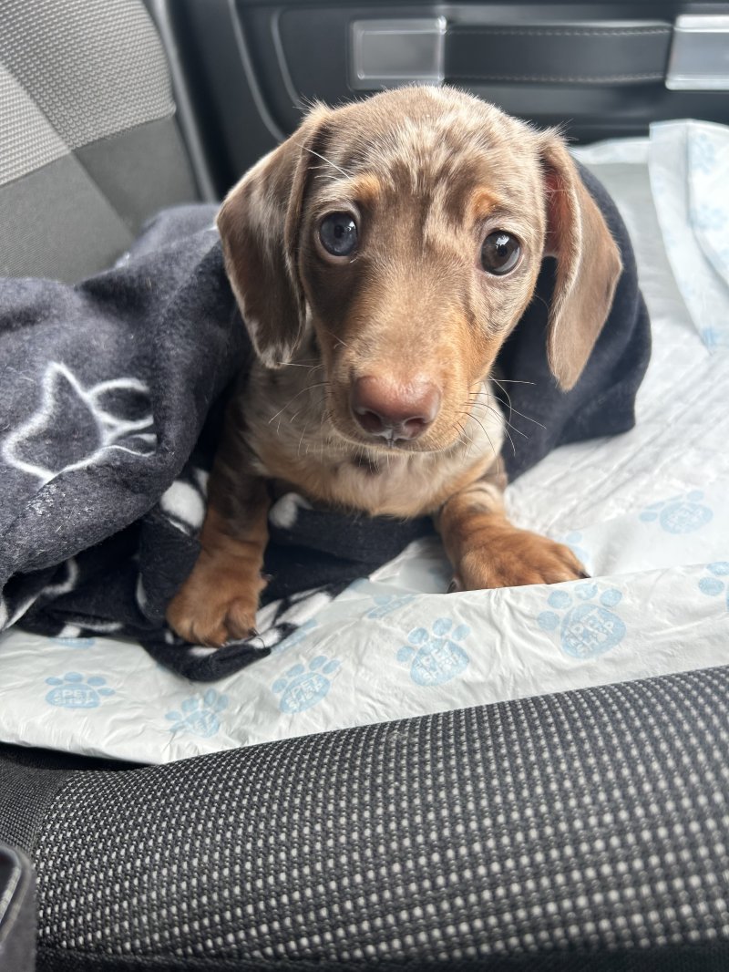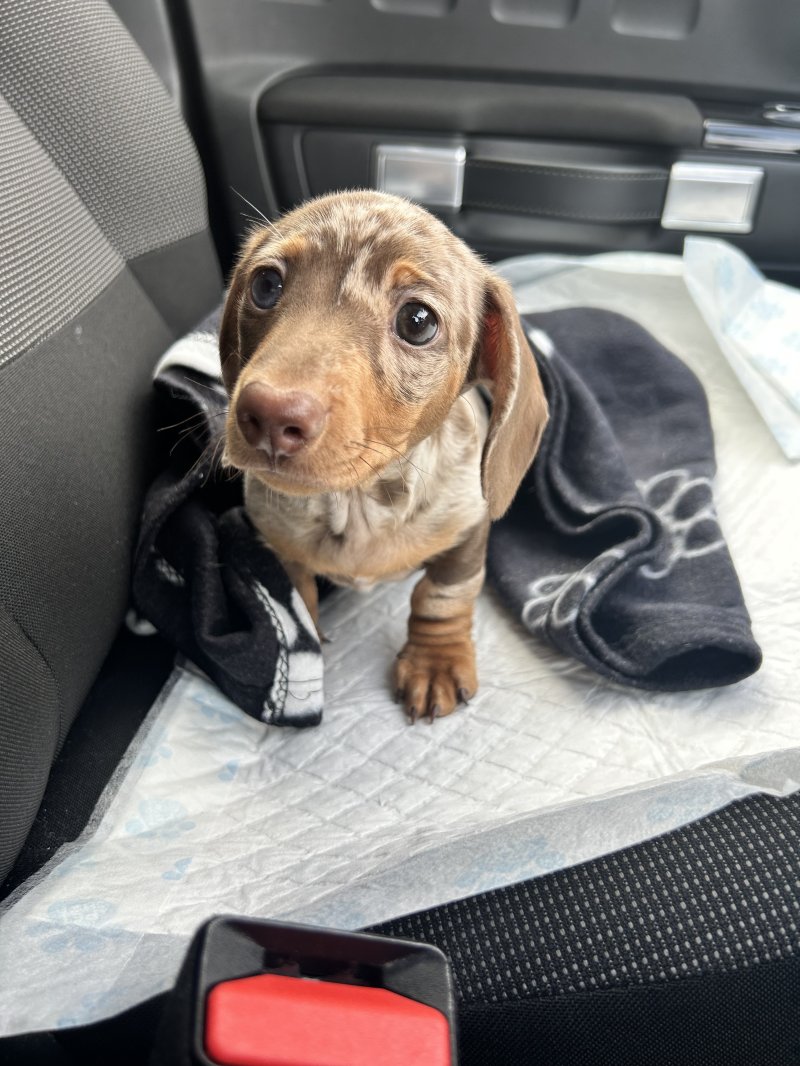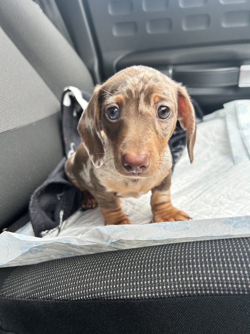 Our beautiful Dachshund Tiger-Lily has done us very proud and given birth to a beautiful miniature dachshund puppy on the 13th August. Tiger-Lily is a smooth hair dapple miniature dachshund with an amazing temperament. She is very well socialised, meaning she's good with all ages including children, due to her living with children her whole life (all ages) and is also amazing with other dogs (we have 2 other dachshunds). This is her very first litter and she is proving to be a fantastic devoted mother.