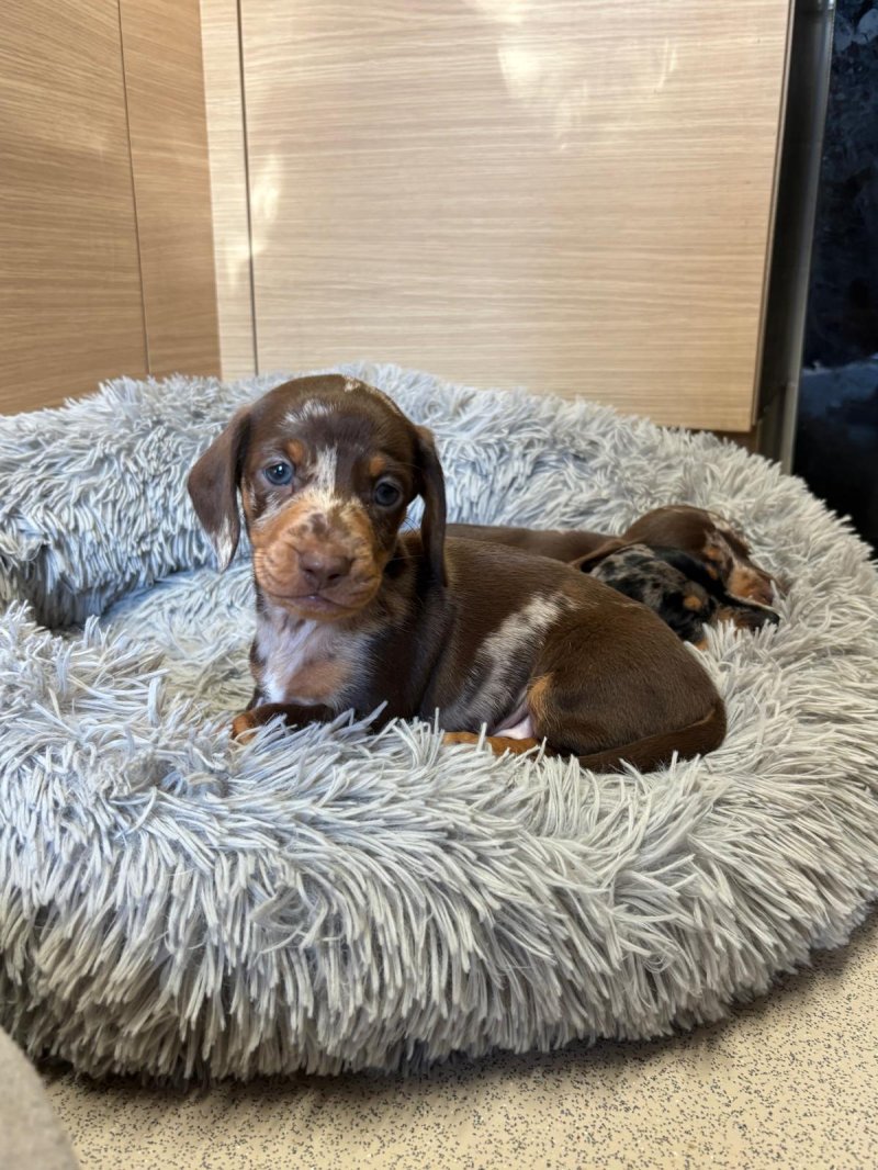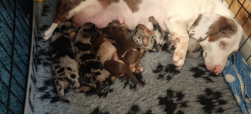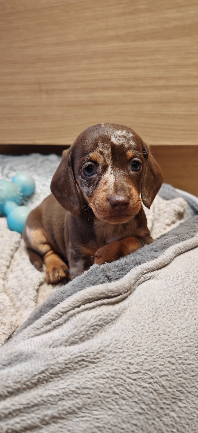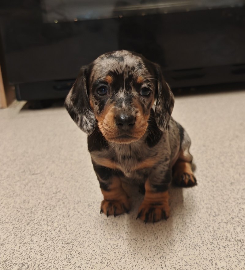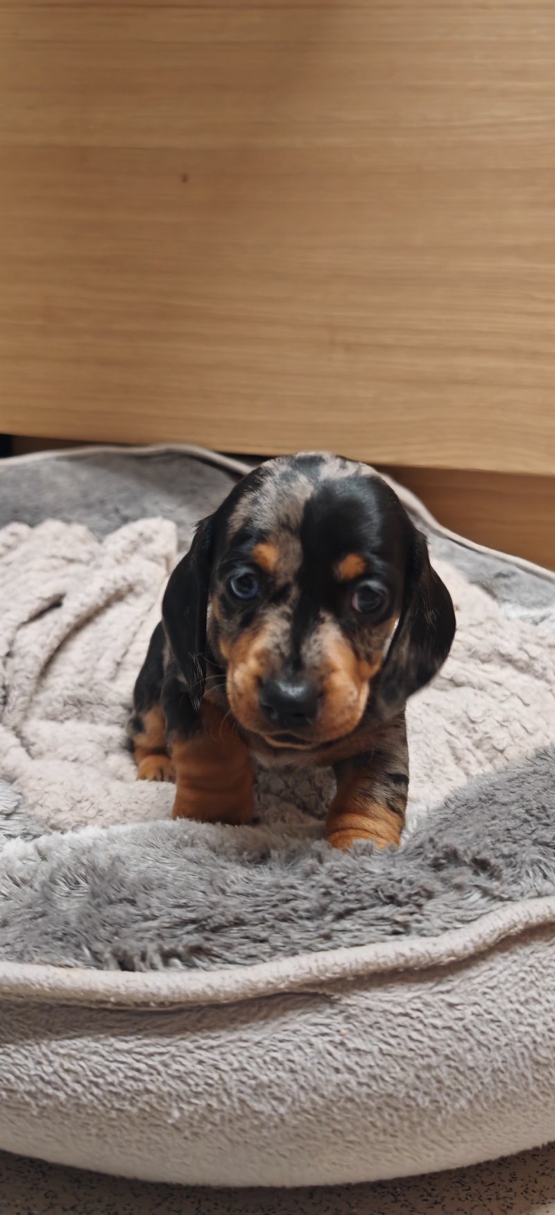 We have 5 adorable miniature dachshund puppies ready on the 3rd of December to join their new forever homes. These bundle of joys are full of love and companionship,they will make a perfect addition to your family. These puppies have been brought up with young children and other pets. We have 2 silver dapple girls and 1 chocolate dapple girl with 1 silver dapple boy and 1 chocolate dapple boy. They will have had their 1st vaccination alongside of up to date worming and most importantly vet checked.