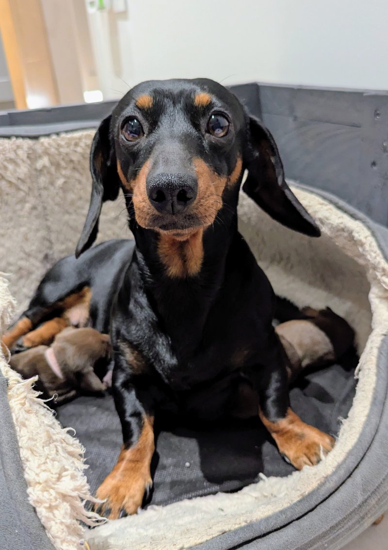 πΎ Elsi (Mum) is our beautiful KC Registered black and tan smooth haired miniature dachshund family pet. She’s absolutely gorgeous and is such a caring and loving dog. Elsi comes from a great blood line (her father has won many championships) and is heredity PRA Clear.