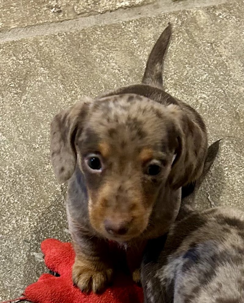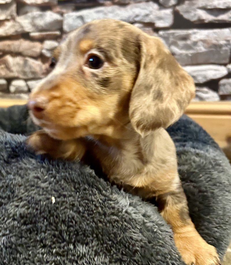 Mum is a lovely black/tan mini smooth and dad is a handsome pra clear mini chocolate dapple so puppies will never be affected