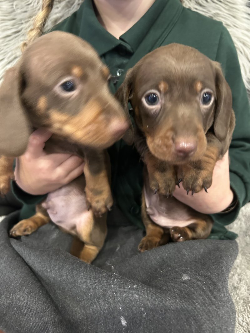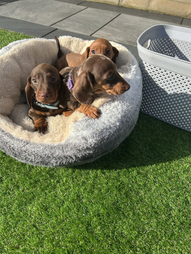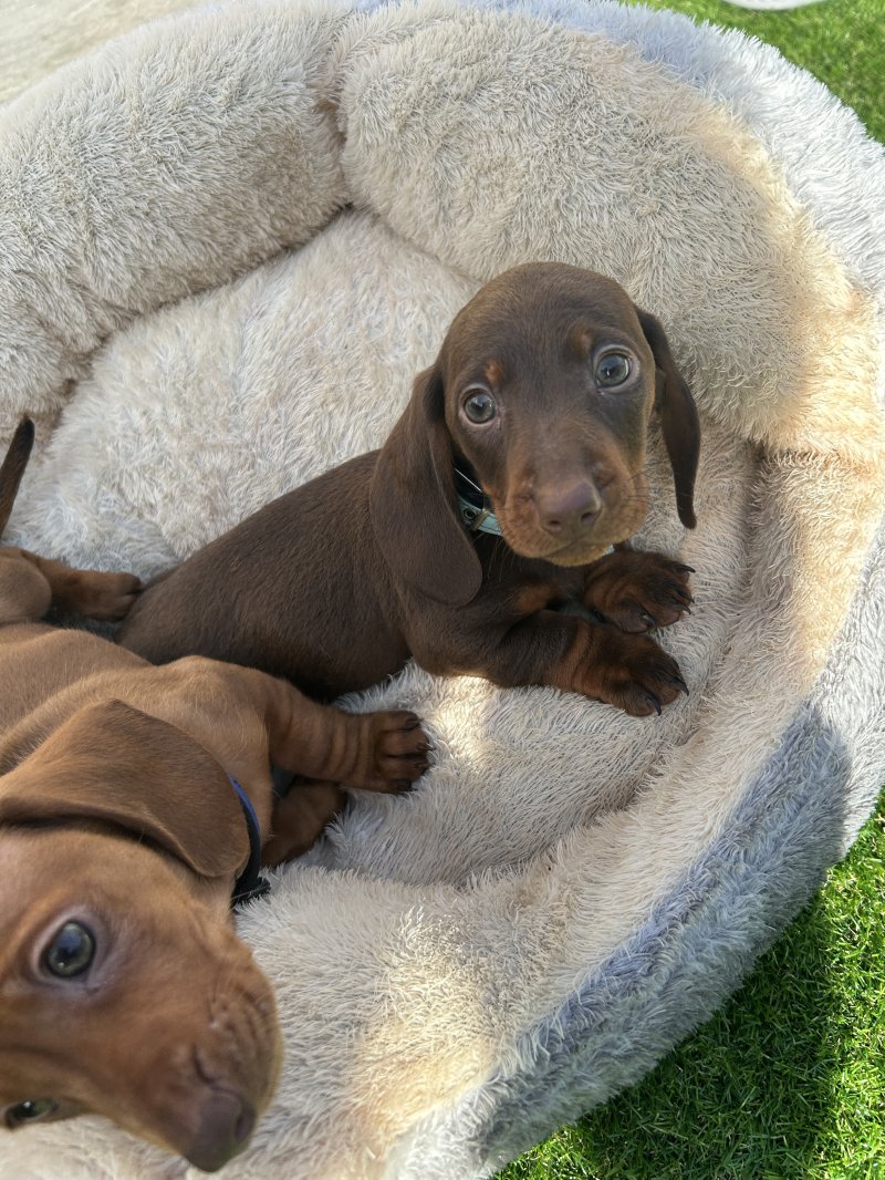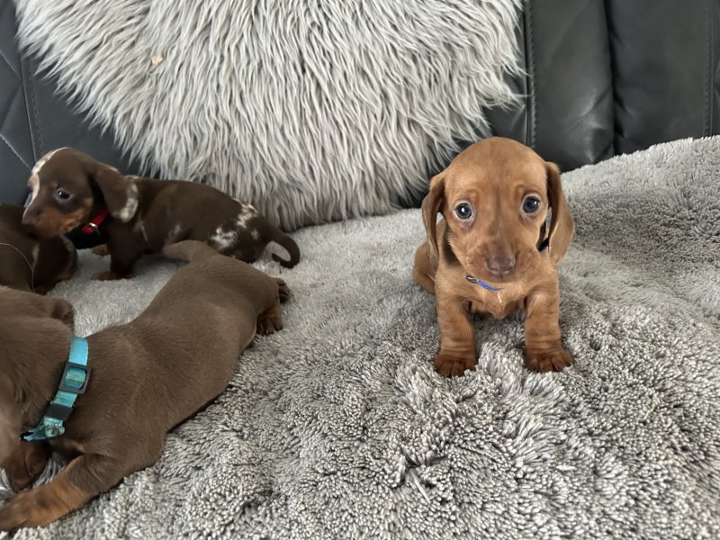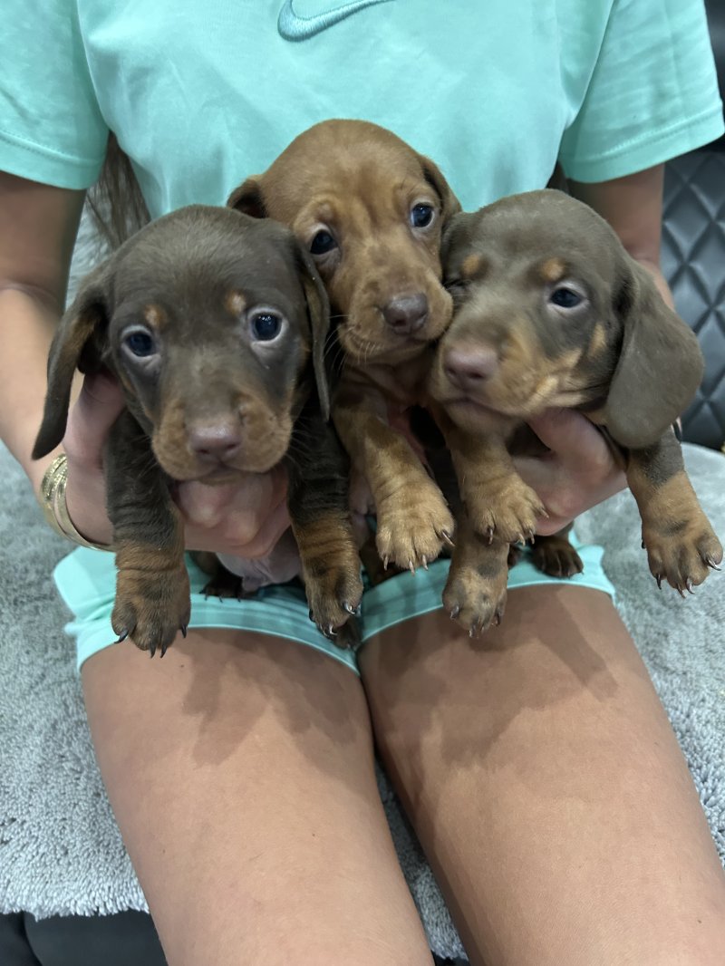 I have 3 kc miniature dachshund puppies for sale three little boys one is red Dapple and two chocolate and tan. They have been vaccinated microchip wormed and fleet. They are ready to leave for their forever loving home. They are very good with children. And very lovable.